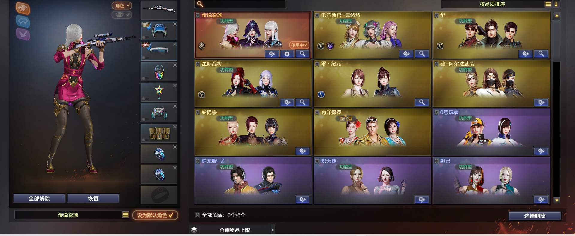 极品爆破号半成品生化号,云龙套竞技荣光套荣耀世冠套,热门狙热门步枪热门刀都有,还有传说角色,皮肤音效卡挺多;荣耀世冠-柯尔特,炽芒蝶刃,传说影煞,电竞教官-云悠悠,Scar Light-白虎,Kar98K-星神,