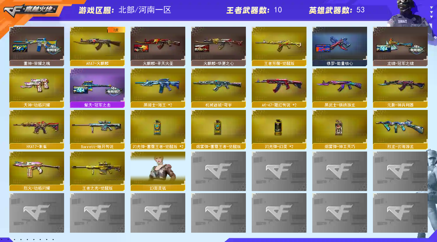 CFS冠军白鲨巅峰纸灯笼幻神雷神荣耀QBZ白鲨白虎朱雀王者芳薇7音效卡王者潘多拉隼猫猫手套冠军之刃