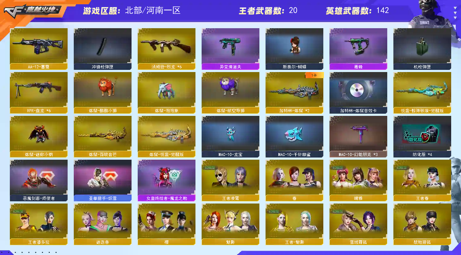 开挂者必将追究到底 账号也备案;USP-雷暴,炽芒蝶刃,沙漠玫瑰,传说影煞,晴雅,传说艾莉莎,RPK-盘龙,