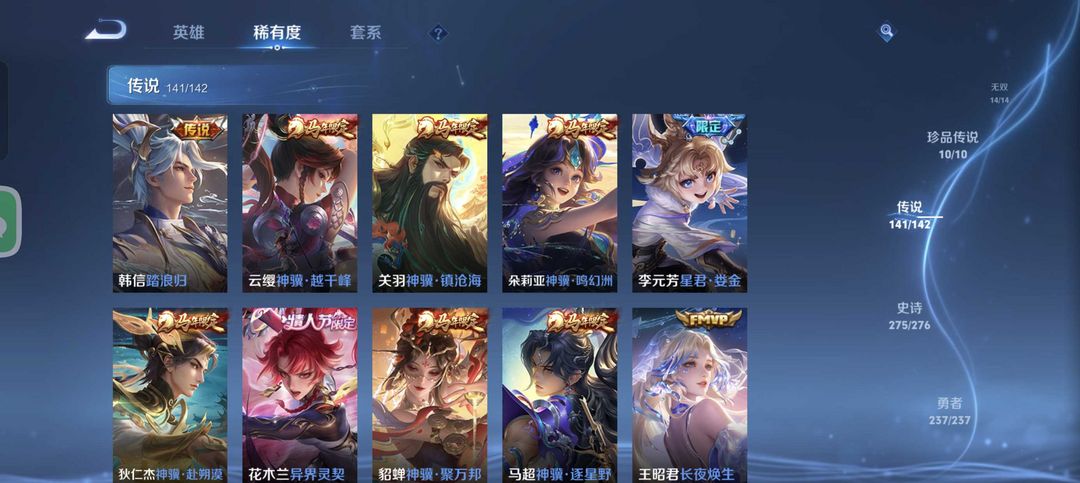 v10、12水562皮、死亡执政官、刘备星传说时之思念、小兵皮肤大耳狗甜茶、瑶无双真我赫兹、愿照·九州拓、怪盗基德、画中仙、至尊宝、凤求凰、神威、天魔缭乱