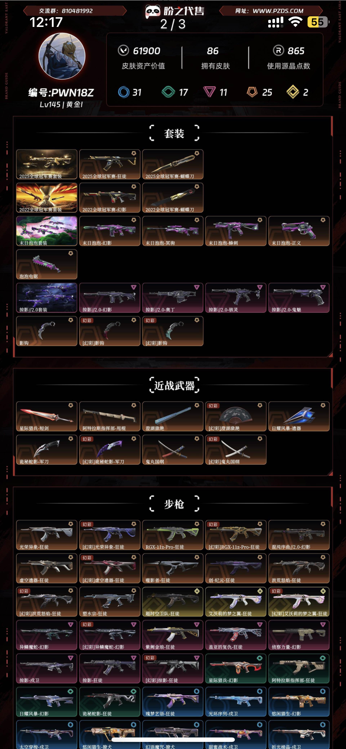 • 武器皮肤数量: 88