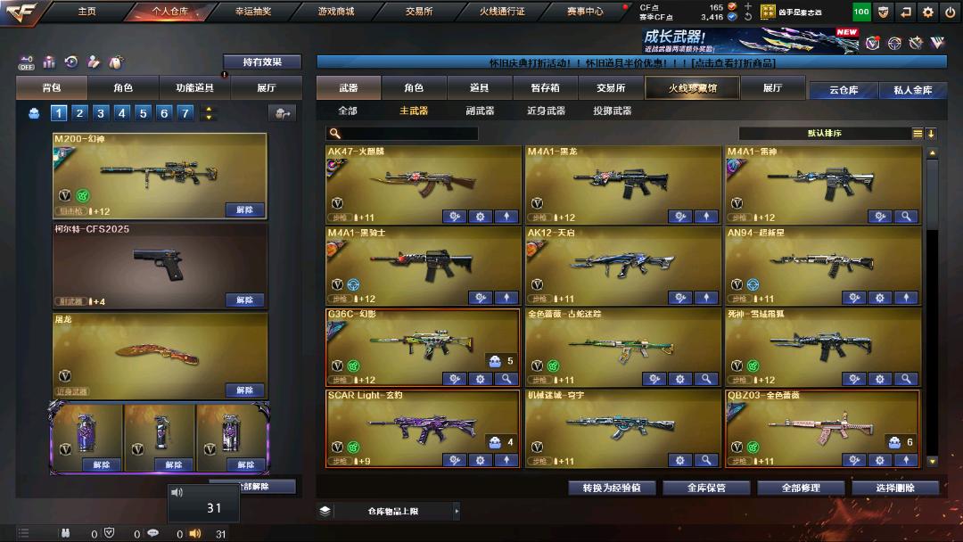 关小雨、炽天使、潘多拉-N、暗夜X等热门角色|全能爆破生化号|全弹夹|热门皮|传奇欧欧、丹凤、星耀、枪娘、流光秘银、雅典胡桃等|白虎玄豹、白虎蓝兔、G36C、QBZ等。你想玩的狙击和步枪系列枪全部都有,投掷玄豹、竞技荣光套等;QBZ03-金色蔷薇,G36C-幻影,M200-幻神,加利尔ACE-天袭,Kar98K-星神,