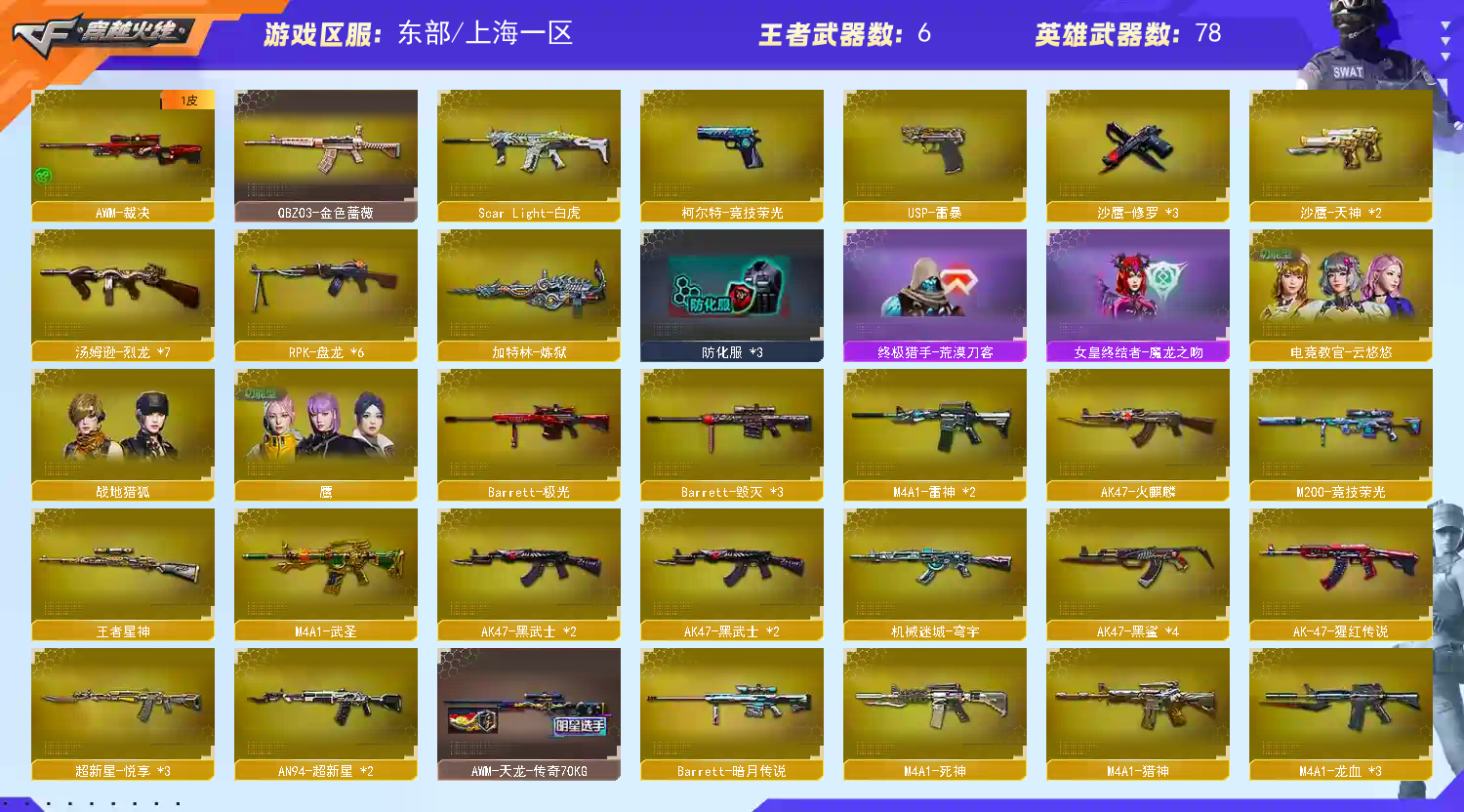 82v-竞技荣光-6盘龙-炼狱-6烈龙-qbz金色蔷薇-白虎-毁灭-裁决-❤光-火麒麟-雷神-修罗-天神-usp雷暴-柯尔特竞技荣光-屠龙-擎天-麒麟刺-擎天竞技荣光-云悠悠-鹰 请看截图 喜欢请点收藏 方便下次租 可以当成自己号玩【感谢老板租此号】优质账号 如果有个别装备到期 影响不大的情况下请不要维权,如遇到账号密码错误 顶号 冻结 请直接维权即可, 科技大佬麻烦看了请绕道,出zu不易,给你跪下了!;USP-雷暴,电竞教官-云悠悠,RPK-盘龙,QBZ03-金色蔷薇,Scar Light-白虎,