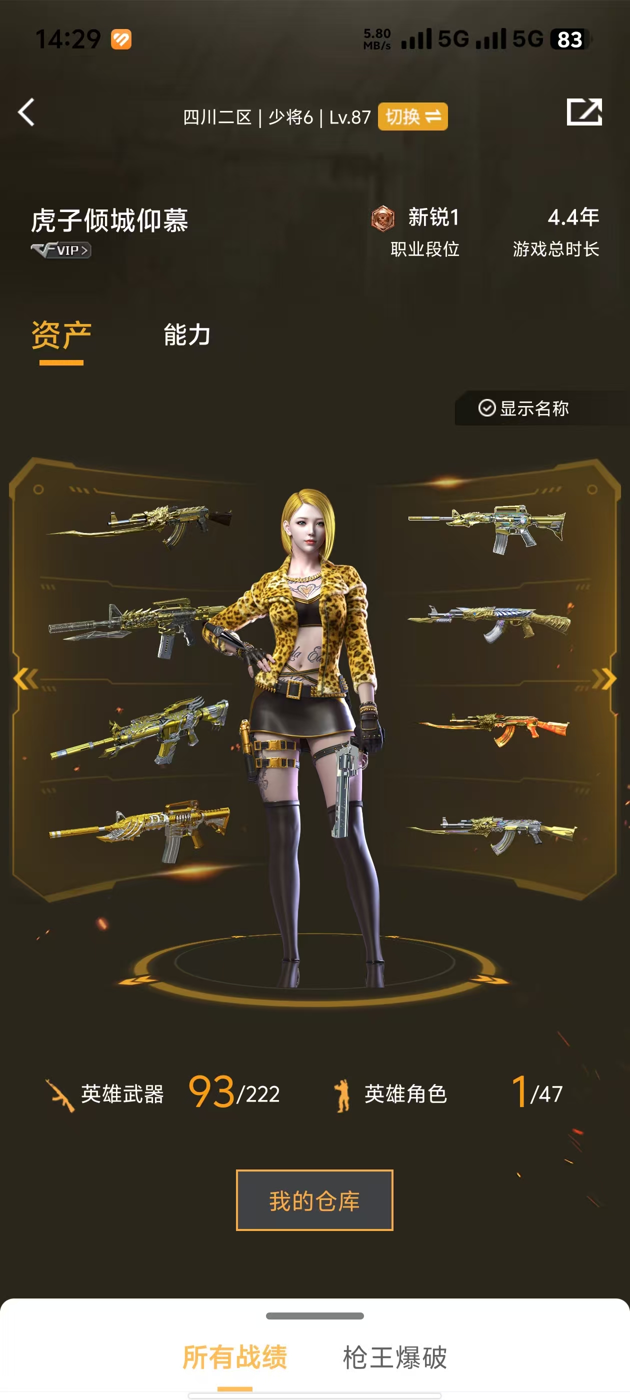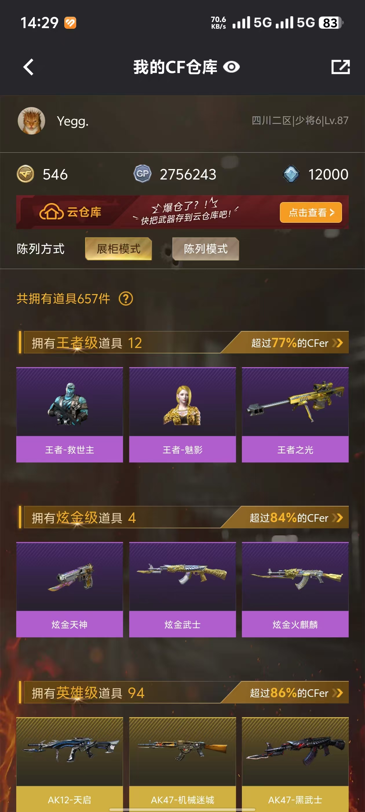 • 游戏区服:穿越火线 / 电信区 / 四川二区