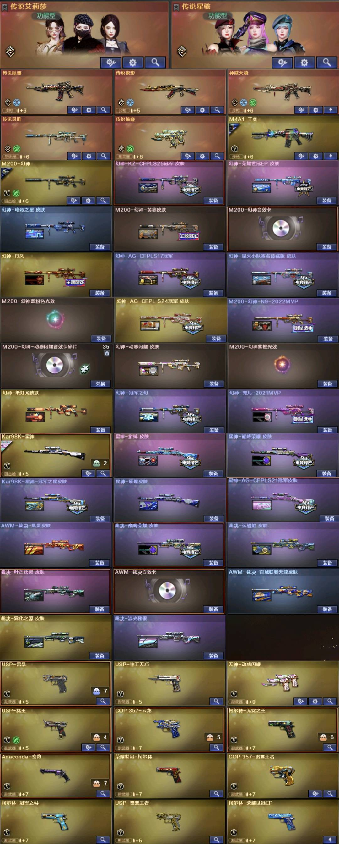。。。。。;USP-雷暴,柯尔特-无冕之王,USP-雷暴王者,荣耀世冠-柯尔特,柯尔特-冠军之特,炽芒蝶刃,传说影煞,