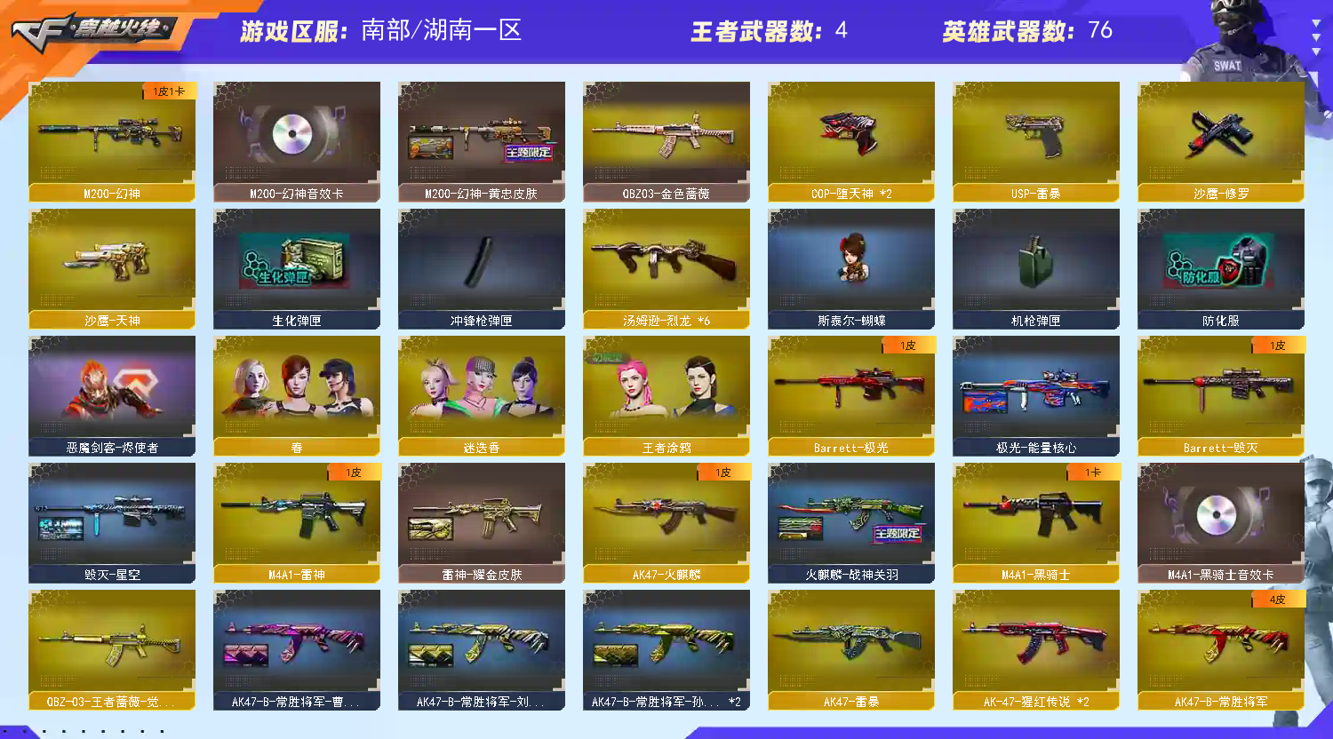 • 游戏区服:穿越火线 / 电信区 / 湖南一区