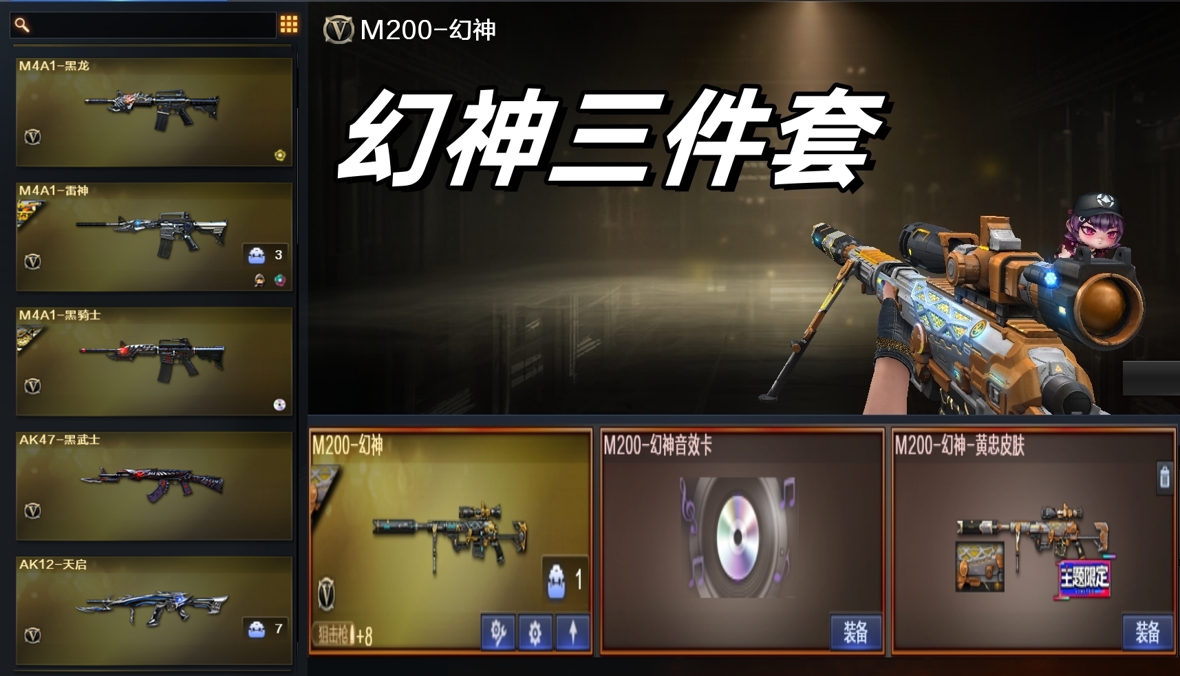 M200-幻神音效卡♥幻神黄忠皮肤三件套✅COP金色蔷薇音效卡毁灭三件套➕生化6烈龙盘龙炼狱死亡之眼