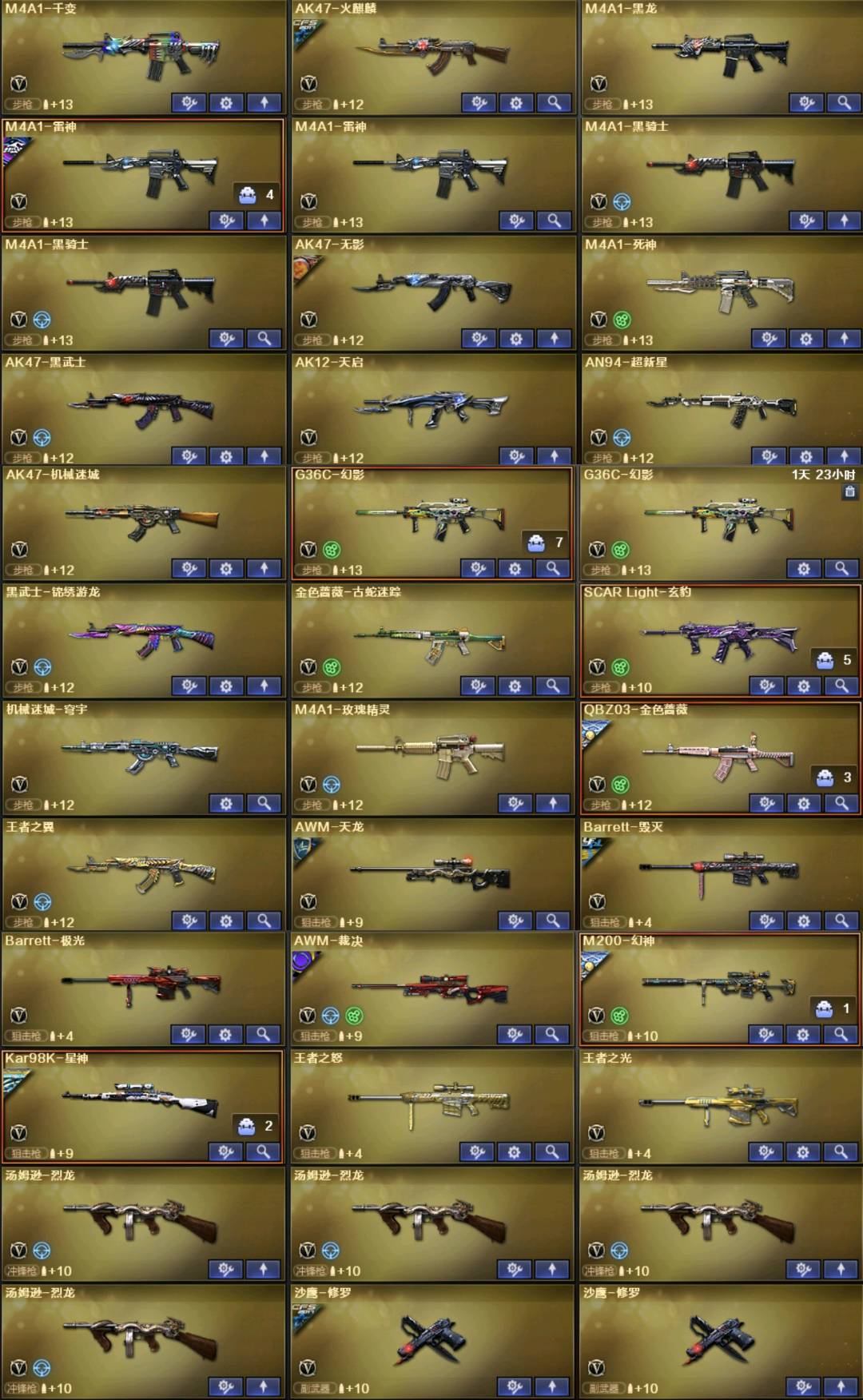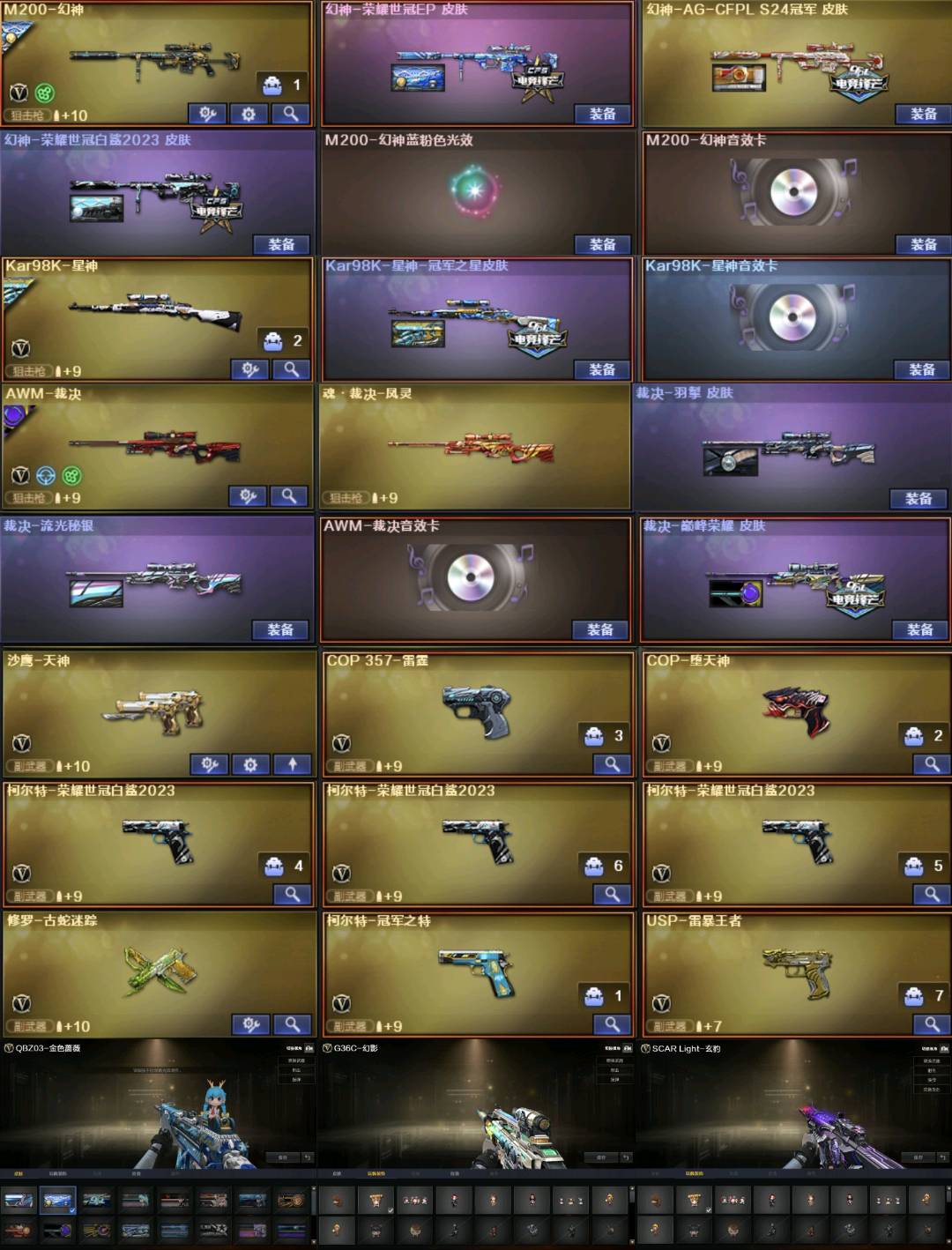。。。。。;USP-雷暴王者,柯尔特-荣耀世冠白鲨2023,柯尔特-冠军之特,炽芒蝶刃,电竞教官-云悠悠,QBZ03-金色蔷薇,G36C-幻影,