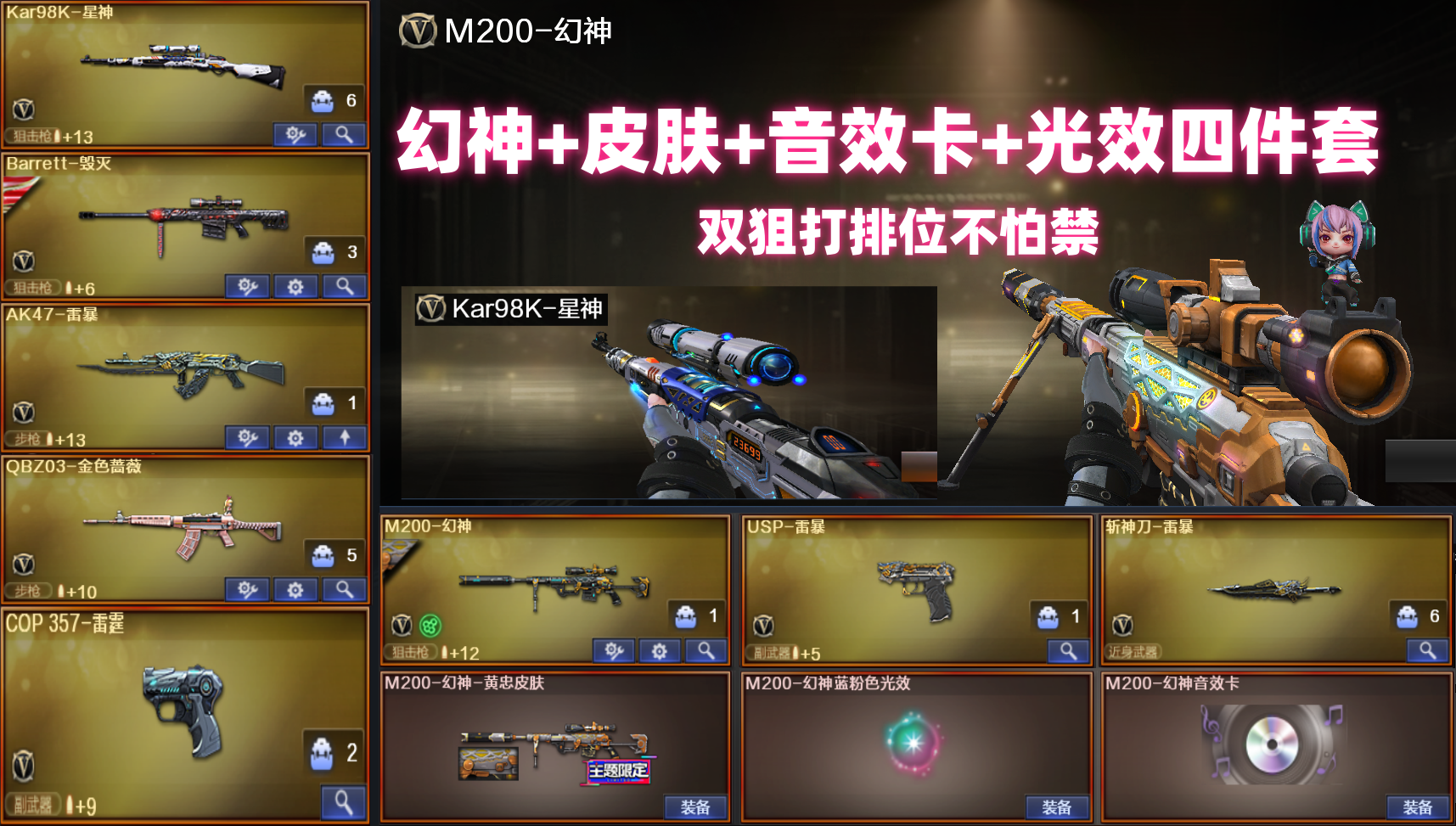 113V❥双全装⚡M200-幻神音效卡幻神皮肤三件套⚡98K星神USP雷暴⚡金色蔷薇✅生化6烈➕蝴蝶