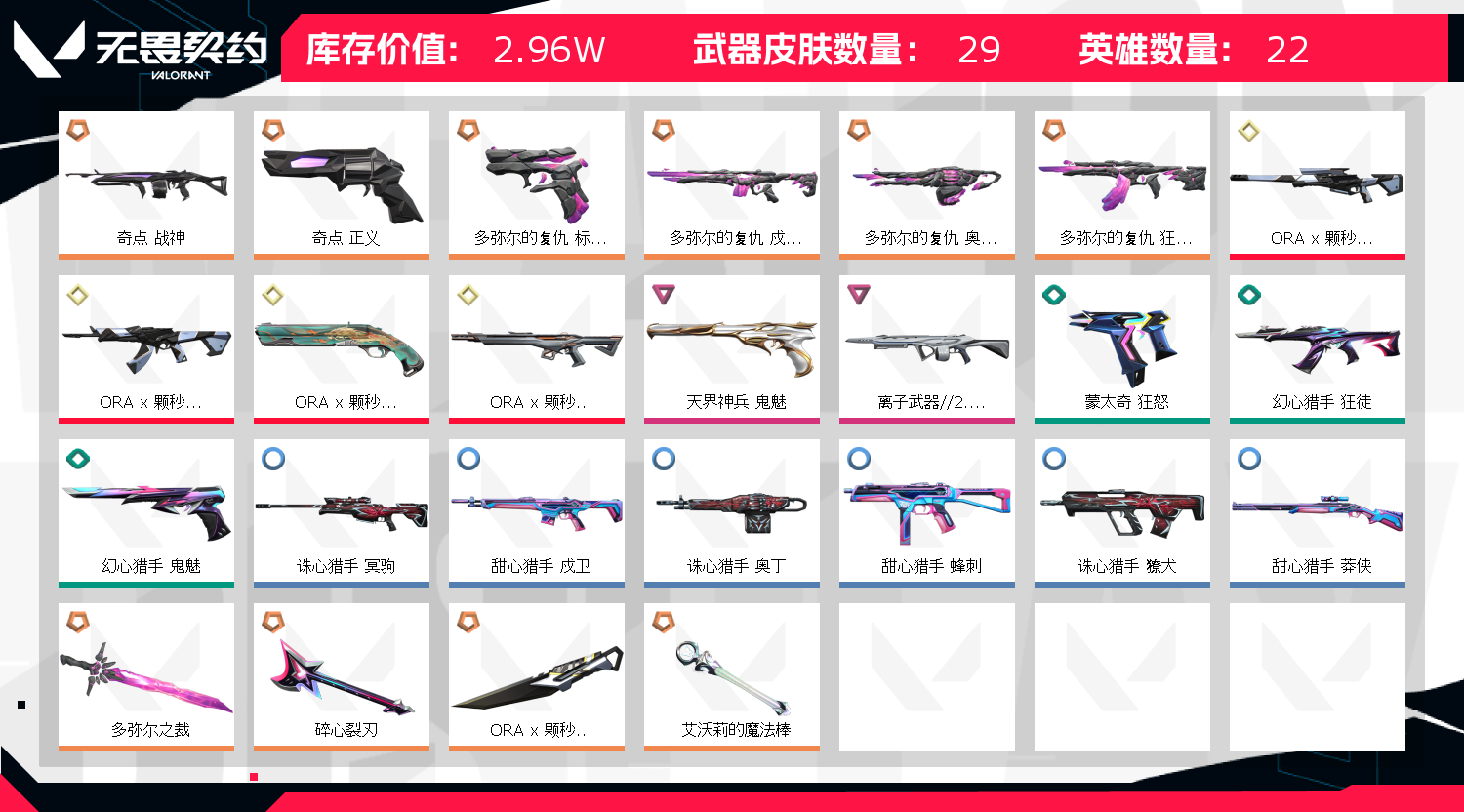 • 皮肤资产价值: 29620