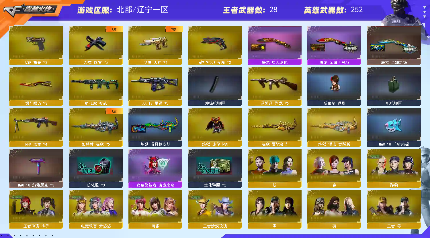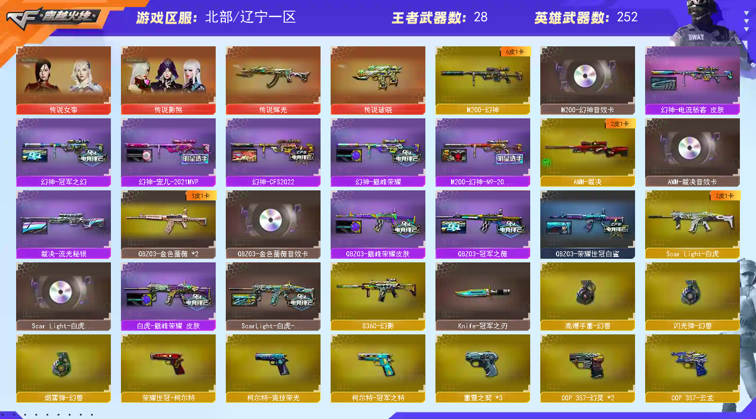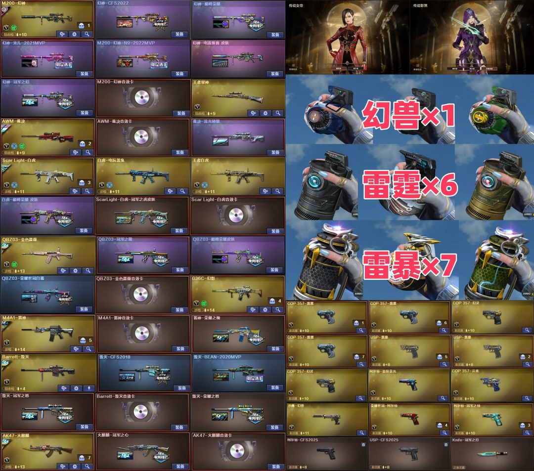 【北部】传说女帝+幻兽+影煞⭐幻神宠儿6皮音⭐裁决套⭐雷暴×2cop×6冠特冠刃白虎蔷薇套幻影