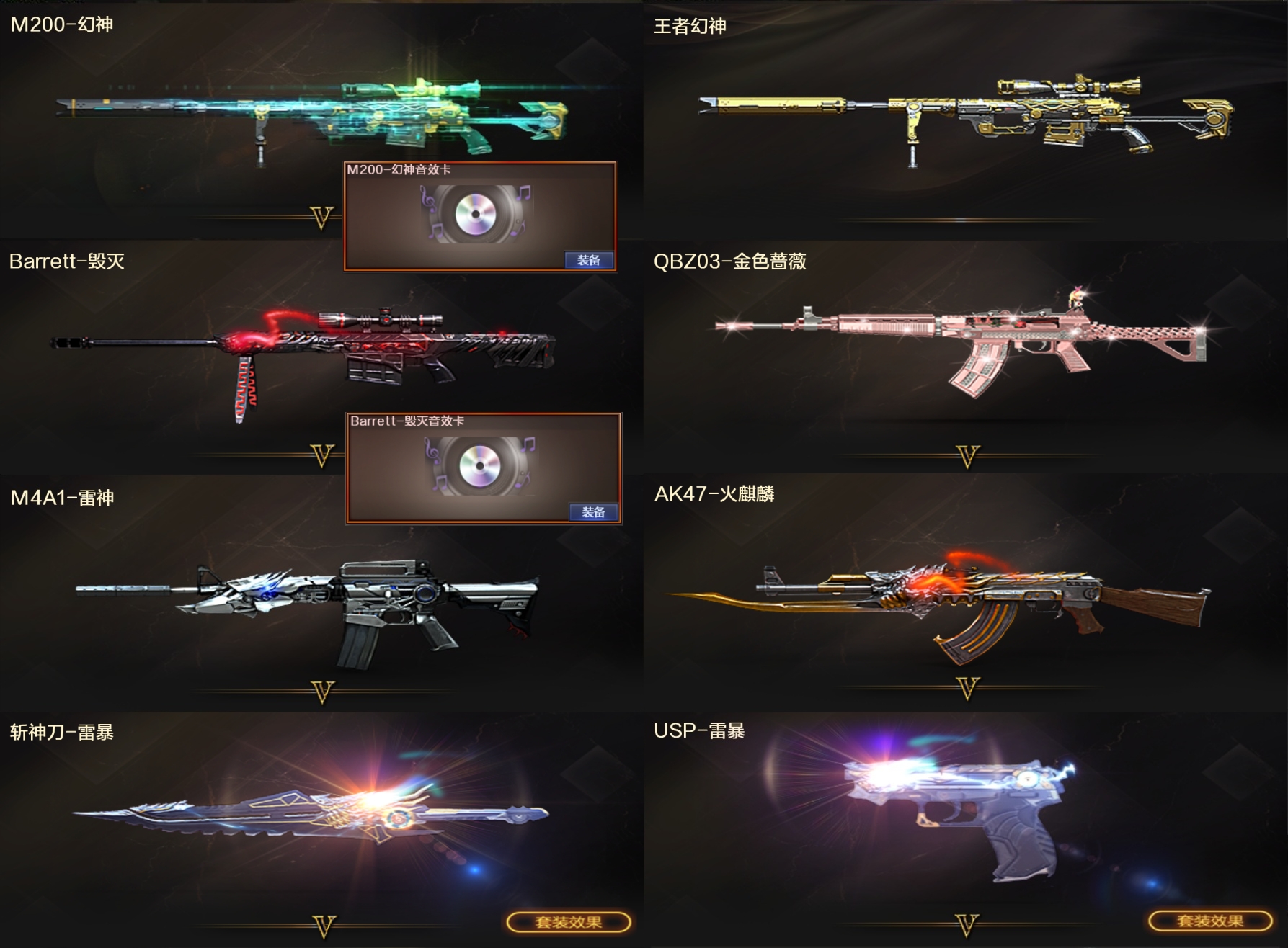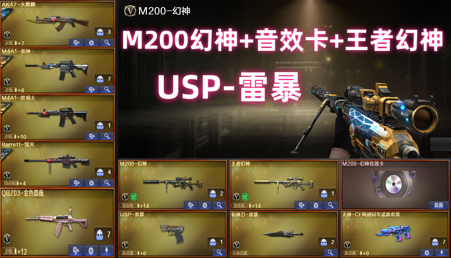 双全装双幻神✅M200-幻神➕幻神音效卡♥王者幻神USP雷暴❥金色蔷薇毁灭带卡✅生化6烈6炼盘龙死眼