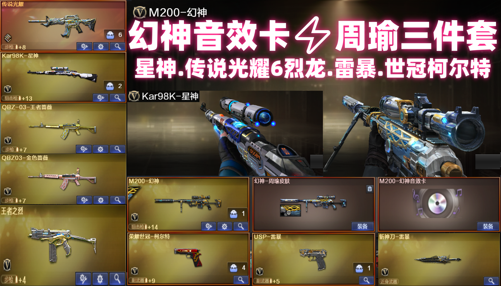 M200-幻神音效卡✅周瑜皮肤三件套USP雷暴传说光耀✅荣耀世冠柯尔特❥蔷薇带音效卡✅生化6烈龙蝴蝶