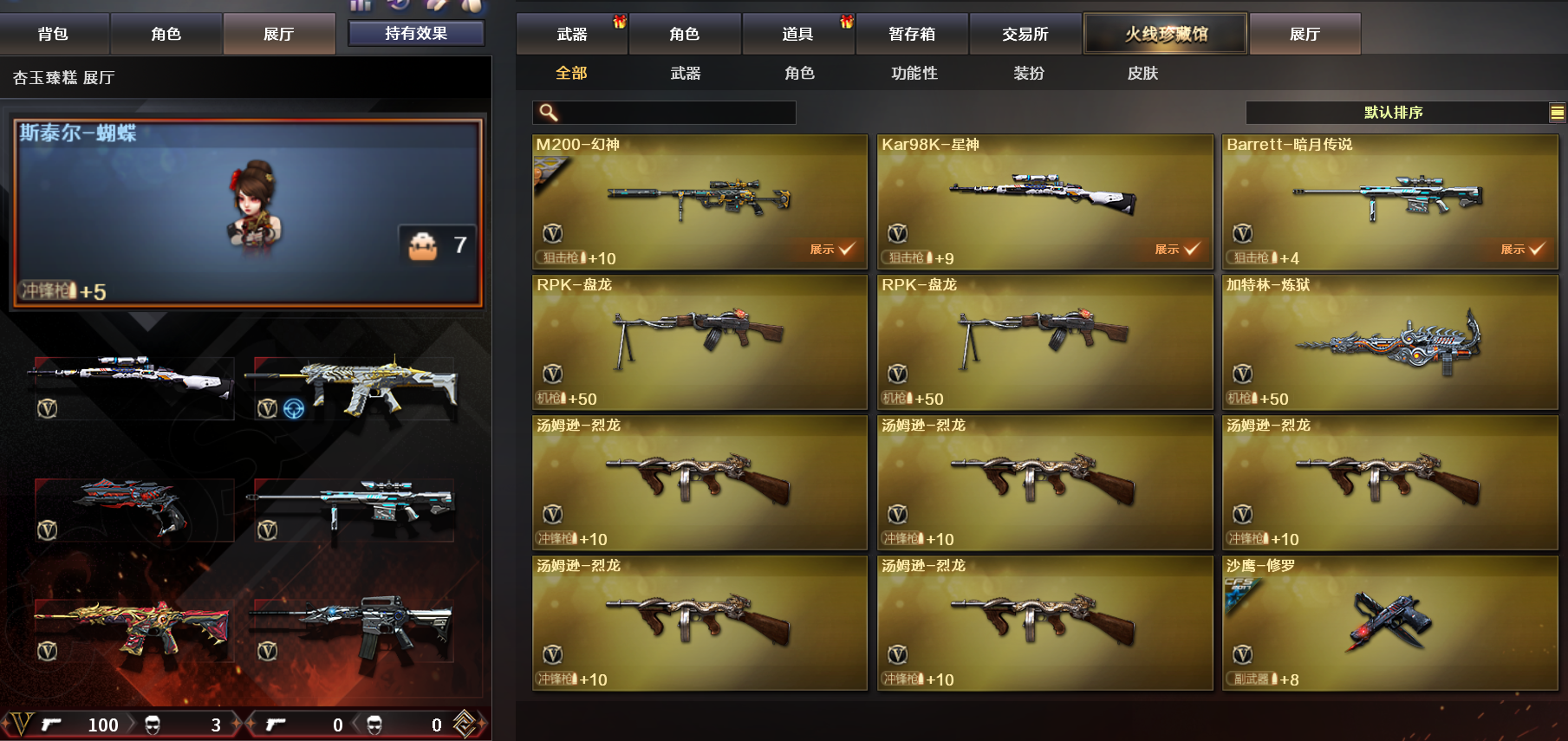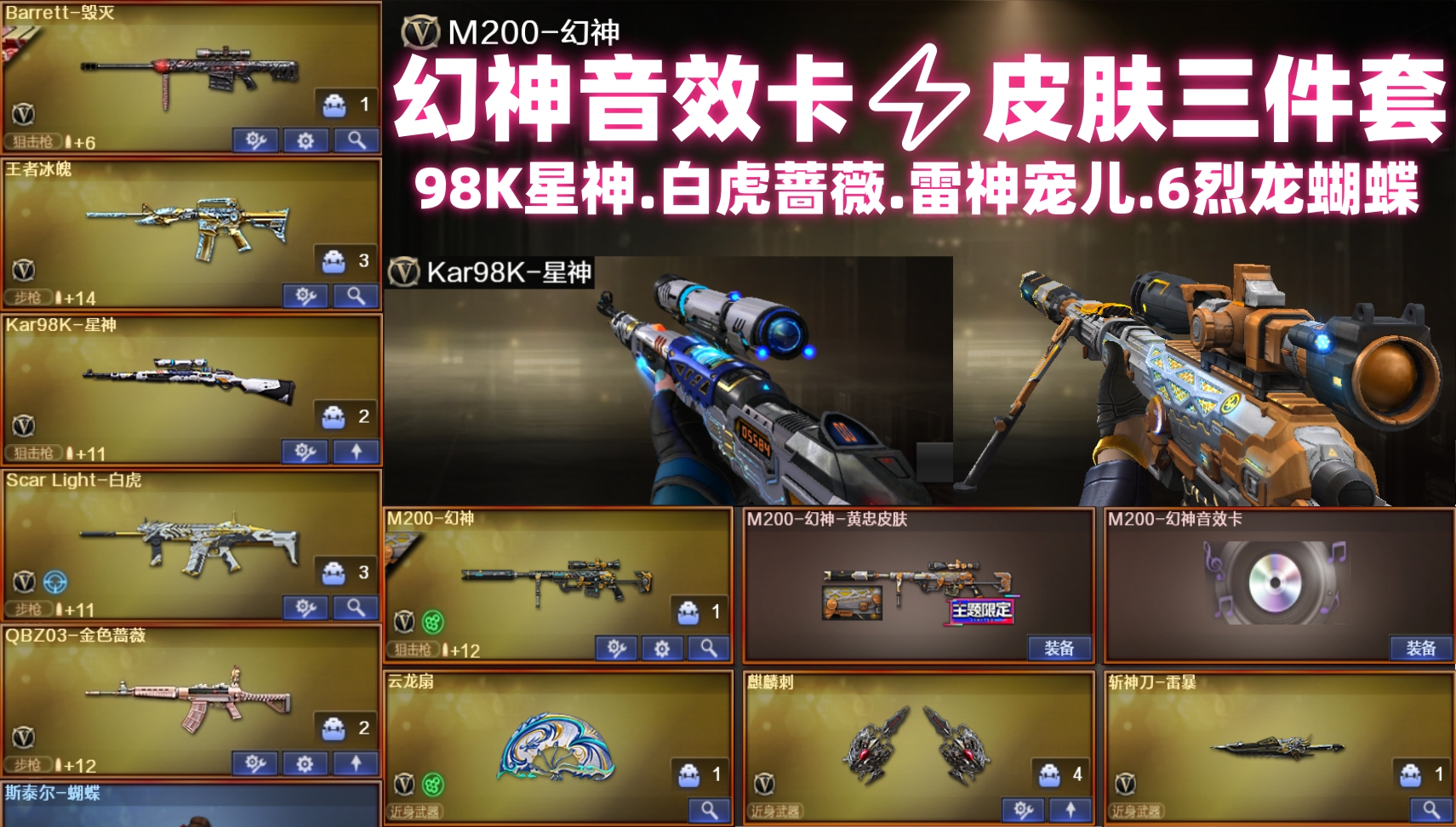 M200-幻神音效卡♥黄忠皮肤三件套✅98k星神✅夜魔手枪雷神宠儿白虎蔷薇✅生化6烈龙炼狱盘龙➕蝴蝶