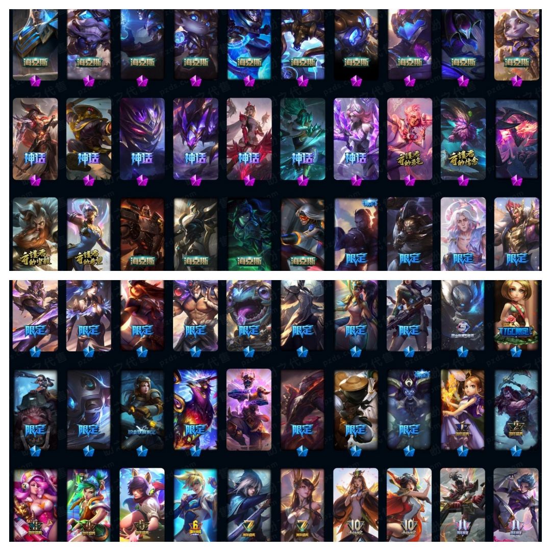 600p33神话☆灰烬派克-至臻kda卡莎-真伤塞纳等-牛年套-龙猴-泳池船长-7周年男刀刀妹-12周年劫-张辽加炫金-10周年霞-电玩周年等-详情看账号描述