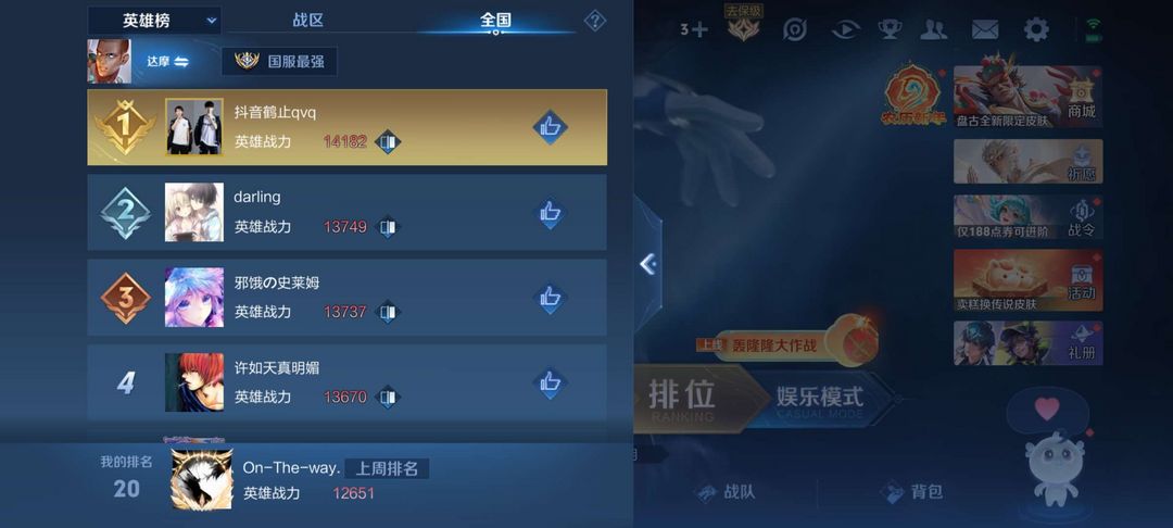 2月在榜本周国50达摩巅峰2116万强框⭐省曹操前主播账号17000国服达摩友好租号谢谢可排位禁巅峰