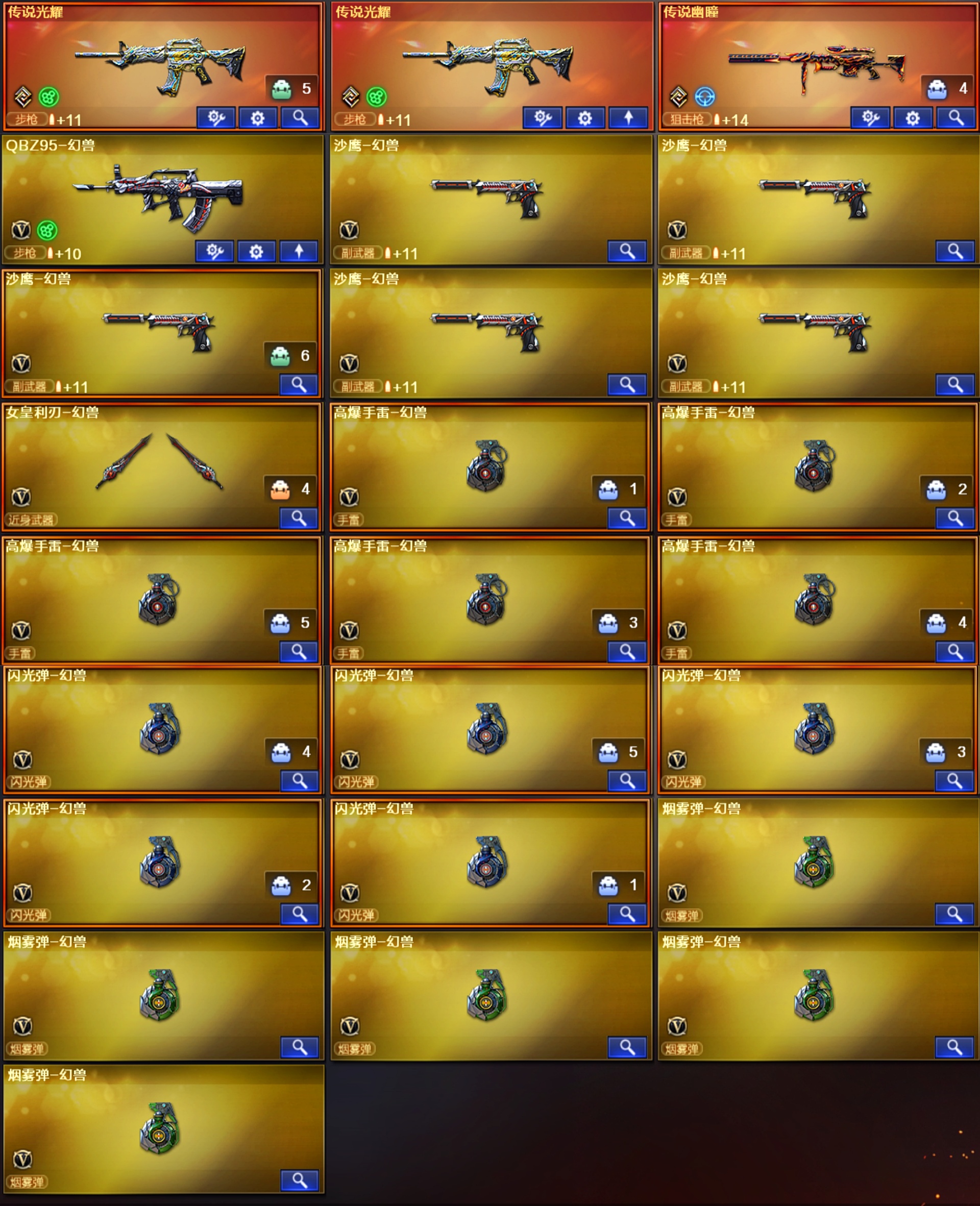 幻兽X5幽瞳幻影♥幻神音效卡4皮新白鲨冠军♥裁决音效卡2皮叶芒♥3柯尔特*6usp*2usp*白虎星