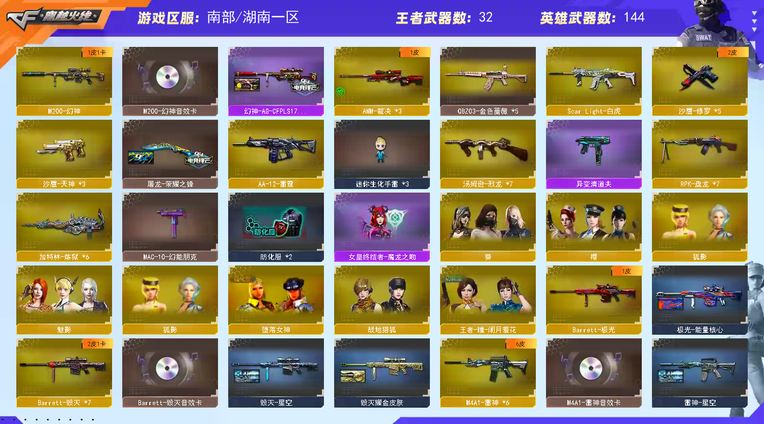 首页 > 租号大厅 > 穿越火线 > 电信区/湖南一区 > 155V⚡M200-幻神音效卡AG冠军三件套COP王者幻神⚡白虎蔷薇雷神5皮毁灭三件套✅生化6盘6烈