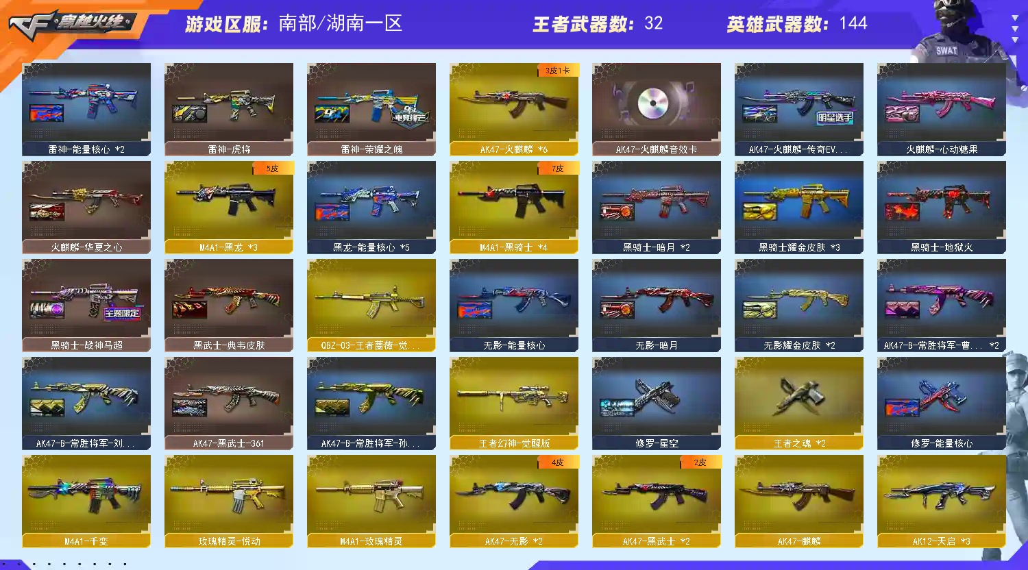 • 游戏区服:穿越火线 / 电信区 / 湖南一区
