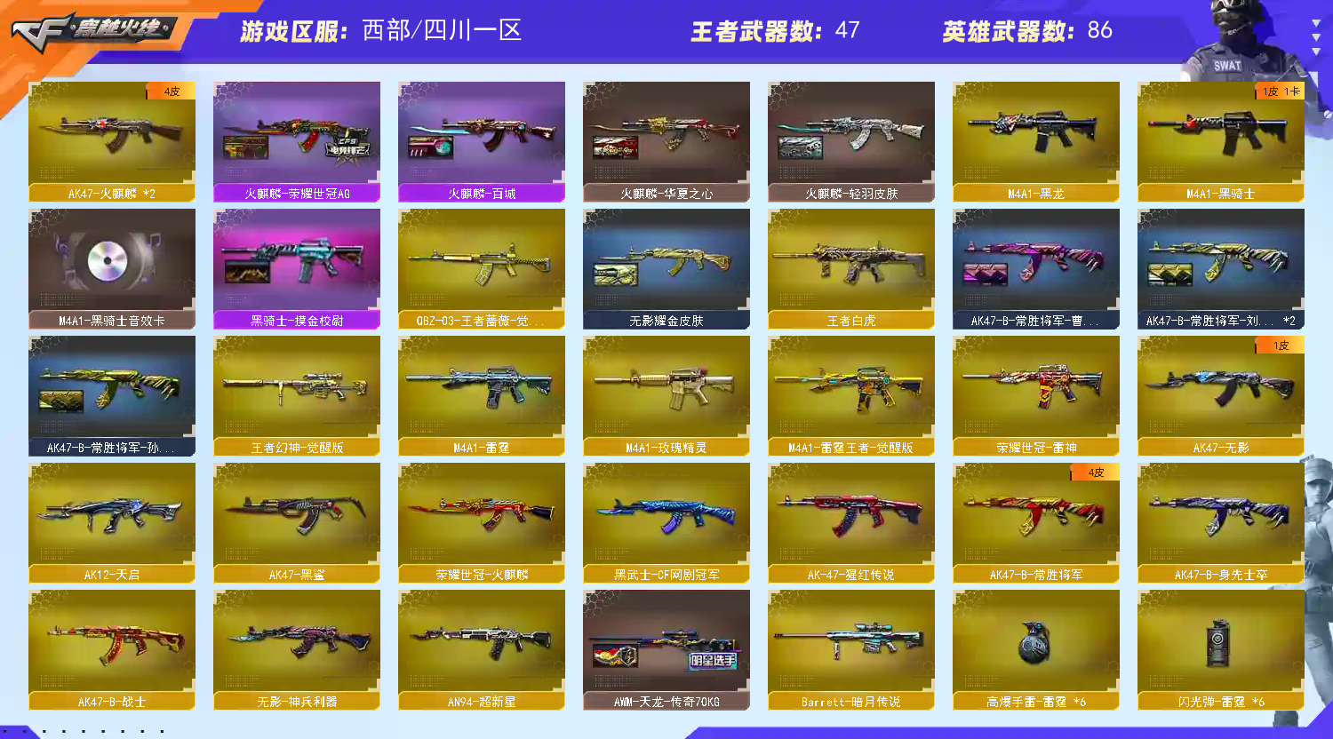 • 游戏区服:穿越火线 / 电信区 / 四川一区