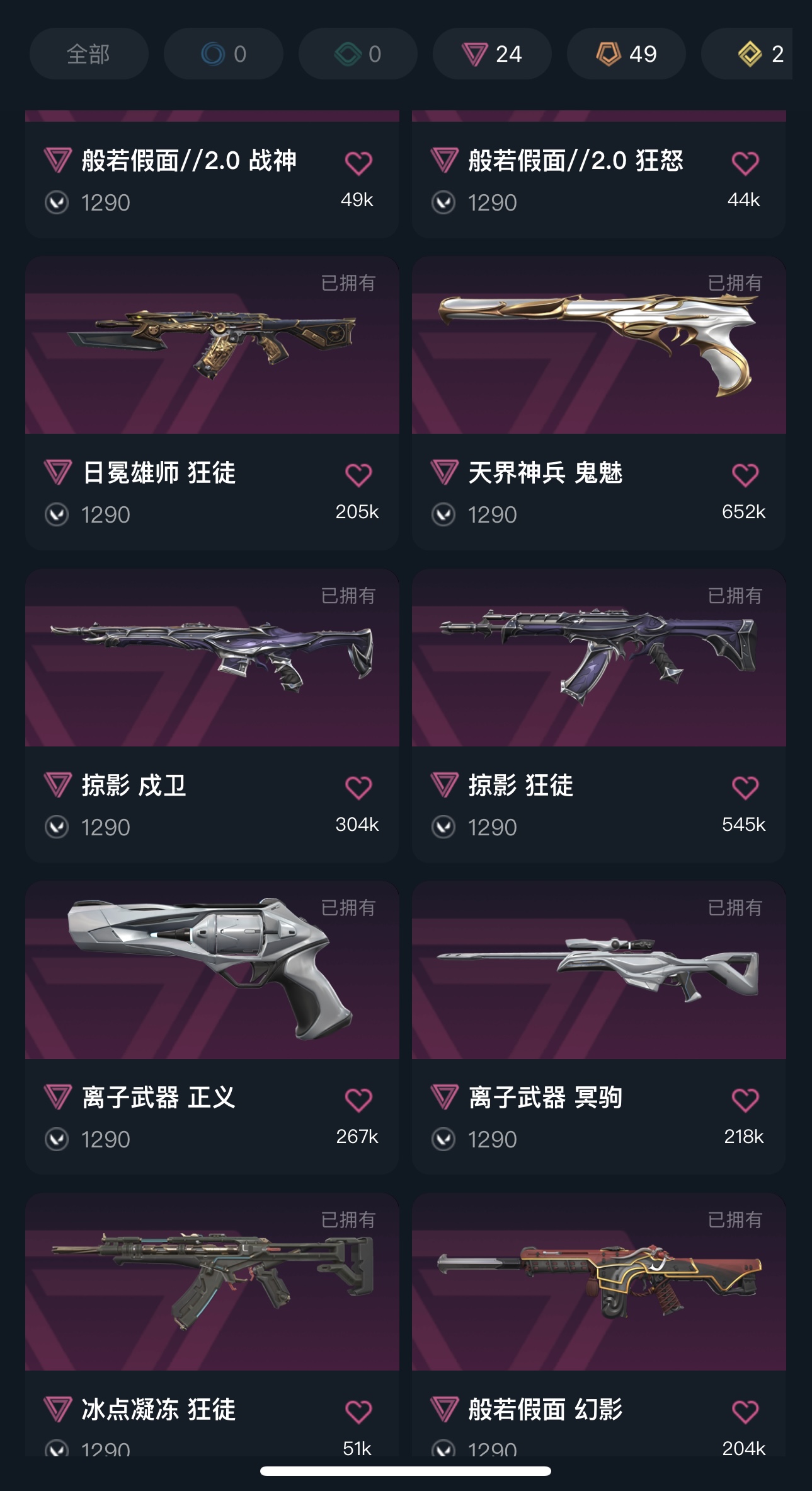 首页 > 租号大厅 > 无畏契约-wegame > wegame/wegame > 可排限定号❗️禁止挂机❗️21 24冠军套🏆离火扇🪭速水套 弃王套 边陲套 盖亚套 混沌套