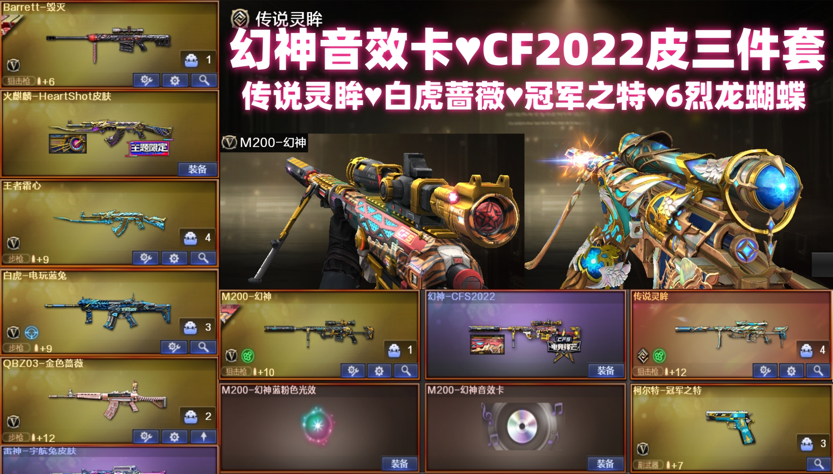 【传说灵眸】M200-幻神音效卡⚡幻神CF200皮三件套⚡冠军之特白虎蔷薇女团火麒麟✅生化6烈龙蝴蝶