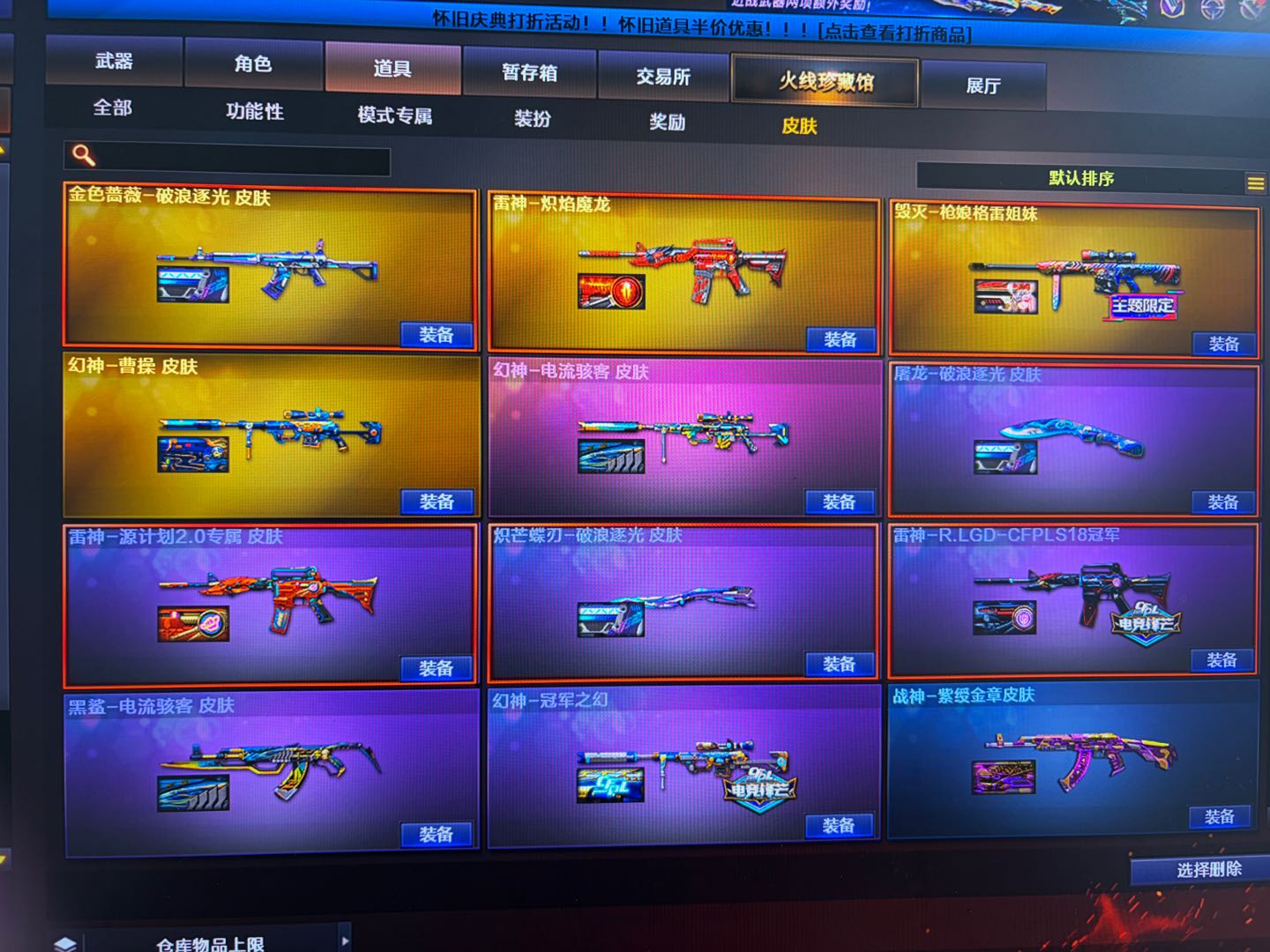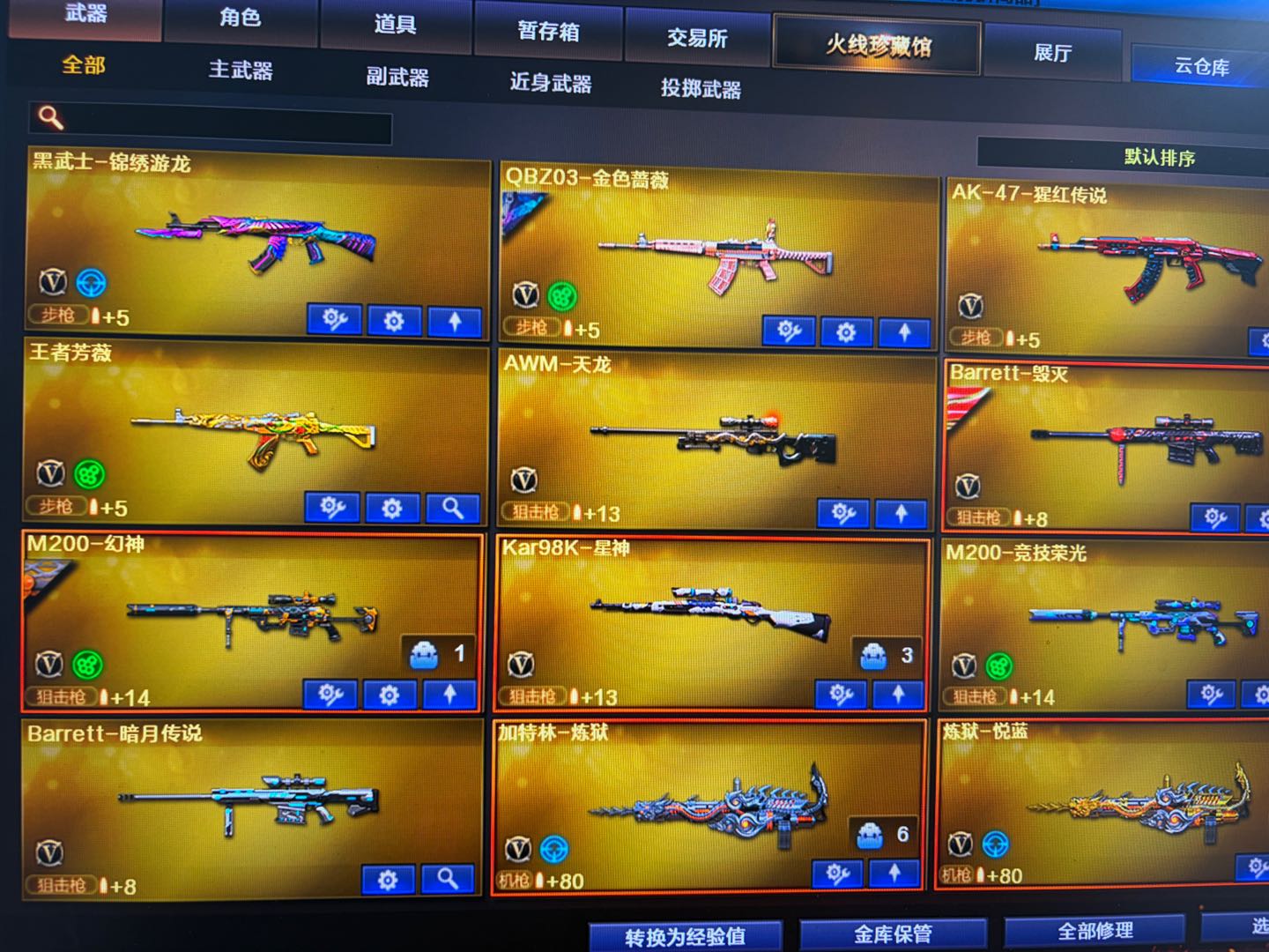 四防角色,防弹衣防弹头盔;USP-雷暴,炽芒蝶刃,电竞教官-云悠悠,QBZ03-金色蔷薇,M200-幻神,Scar Light-白虎,Kar98K-星神,