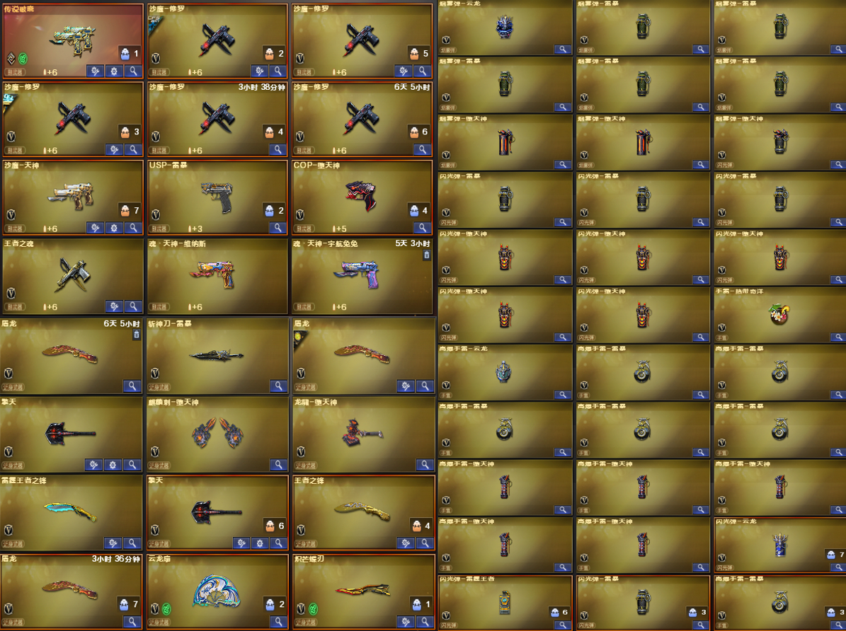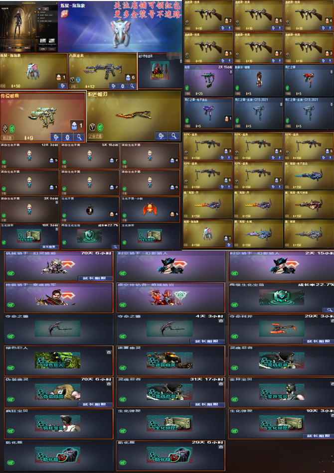 炼狱-泡泡象八面凌龙❤影煞破晓全猎手皮双炽芒蝶刃❤异变镇魔者❤⑤减速雷6盘6烈蝴蝶清道夫♥幻神星霆;USP-雷暴,炽芒蝶刃,传说影煞,RPK-盘龙,QBZ03-金色蔷薇,炼狱-泡泡象,M200-幻神,