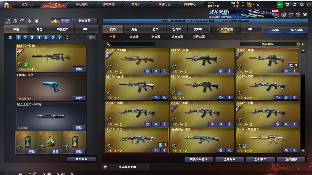 【M200 - 幻神 + 幻神 - 星耀皮肤】【1 盘龙】【1 炼狱 + 炼狱 - 百战金芒 + 炼狱 - 百战金芒 - 庆典舞曲音效卡】【M4A1 - 雷神 (2)+AK-47 - 雷神 + 雷神 - 源计划 2.0 专属皮肤 + 雷神 - 虎将 + 雷神 - 星空 + 雷神 - 维纳斯皮肤】【AK47 - 火麒麟 + 火麒麟 - CFSTAR + 火麒麟 - 轻羽皮肤 + 战神 - 流金岁月皮肤 + 战神 - 紫绶金章皮肤】【Barrett - 毁灭 (2)+ 毁灭 - 百城浙江皮肤 + 毁灭 - 战神张飞 + 毁灭 - 星空】【M4A1 - 黑骑士 + 黑骑士 - 战神马超 + M4A1 - 黑骑士音效卡】【M4A1 - 黑龙 + M4A1 - 黑龙音效卡】【M4A1 - 猎神 (3)】【M4A1 - 玫瑰精灵】【王者之怒 - 觉醒版】【王者之武 - 觉醒版】【AK12 - 天启】【AK47 - 无影 (4)+ 无影 - 霓裳皮肤 + 无影 - 能量核心】【AK-47 - 猩红传说 (7)】【AK47-B - 战士】【AK47-B - 战神】【9A91 - 烈火 (2)+ 烈火 - 熔核皮肤】【AA-12 - 雷霆】【沙鹰 - 天神 (2)】【麒麟刺 + 麒麟刺 - 甜蜜糖果皮肤】【龙啸 (2)】【擎天 (2)】【屠龙】【雷霆之锋】【王者之锋 - 觉醒版】【Barrett - 暗月传说】【王者零 - 传说之路 / 王者 - 救世主 / 王者葵 - 惊若翩鸿 / 葵 - 阿尔法武装 / 龙儿 - 小淘气 / 铁扇公主 / 奇洋探员 / 乔伊教练 / 云海玲珑 / 电竞少女 / 炽天使 / 铁骑荣耀 / 灵狐者 - 黄金海岸】【QBZ-03 - 王者蔷薇 - 觉醒版 / 机械迷城 - 穹宇 / 黑武士 - 典韦皮肤 / 王者之心 / Barrett - 雷霆王者 / 王者之力 / 高爆手雷 - 雷霆王者】【AWM - 灵狐 - 15 周年嘉年华 / M37 - 葵 / 魔能飞环 - 曼陀罗 (2)/ 迷你裂空之翼】【AWM - 天龙 - 传奇白鲨 + 天龙 - CFSTAR】【沙鹰 - 修罗 - CFSTAR】【QBZ03 - 金色蔷薇音效卡】;RPK-盘龙,M200-幻神,