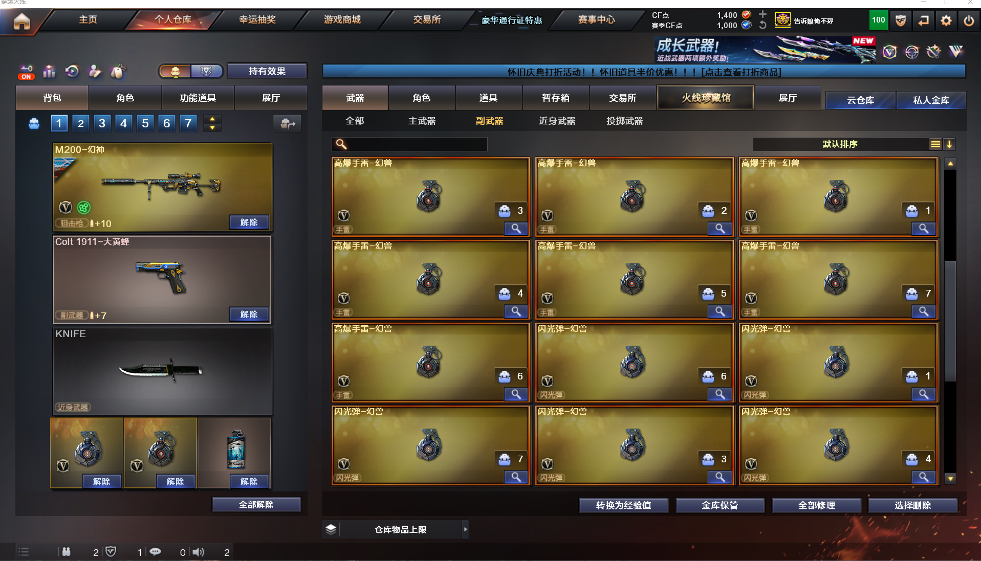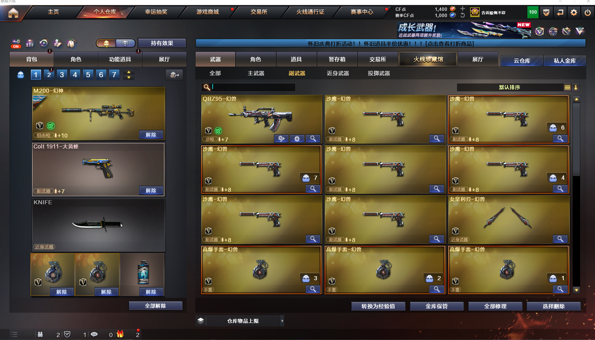 绝版蝴蝶7套幻兽+幻神星火小队+g36幻影+裁决+6黑6盘6烈+雷神荣耀之魄110v
