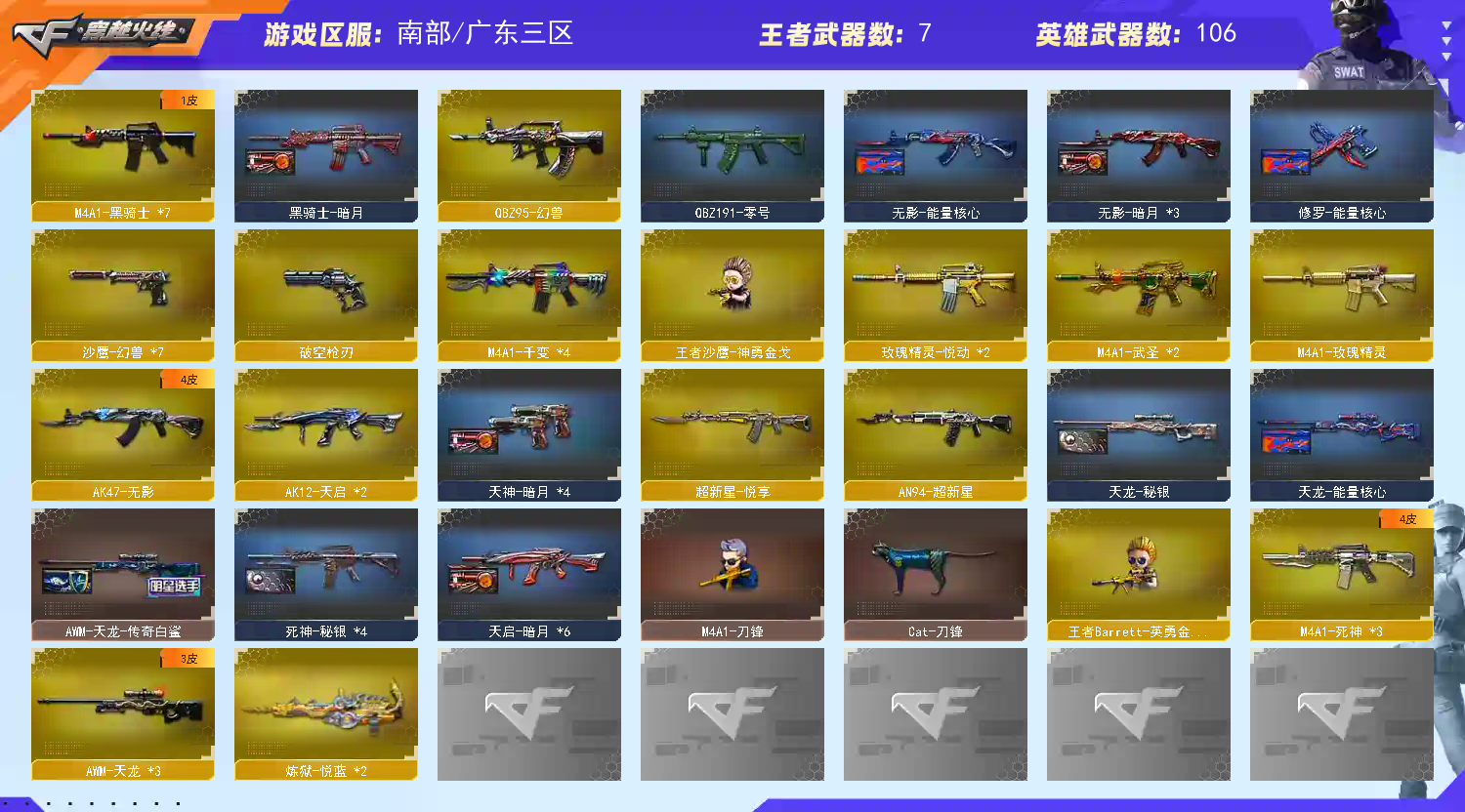 首页 > 租号大厅 > 穿越火线 > 电信区/广东三区 > 绝版蝴蝶7套幻兽+幻神星火小队+g36幻影+裁决+6黑6盘6烈+雷神荣耀之魄110v