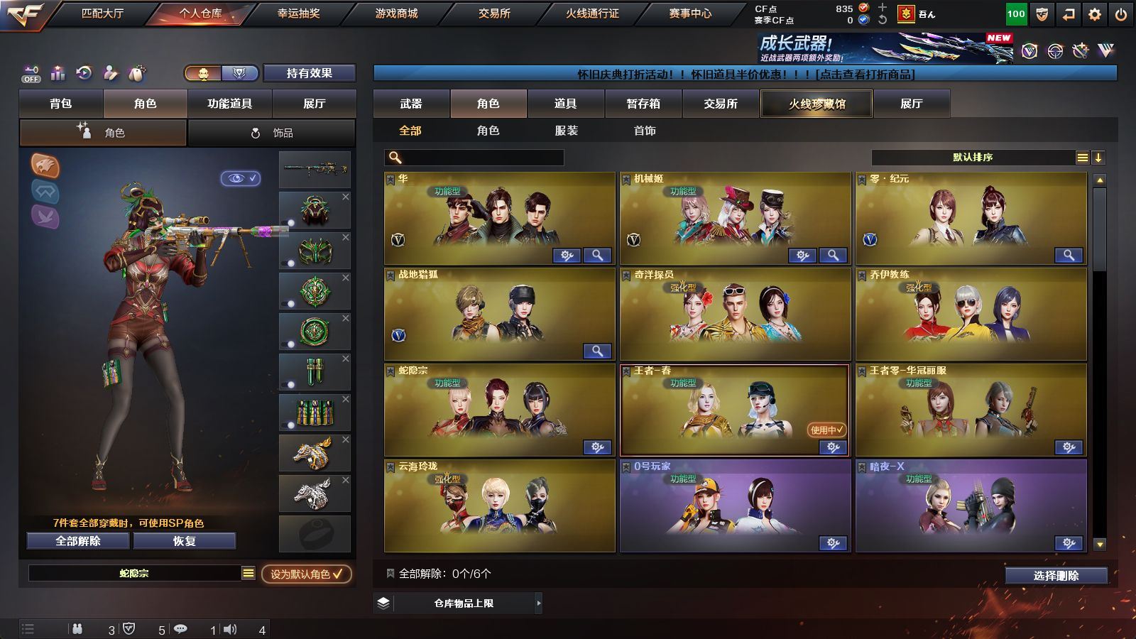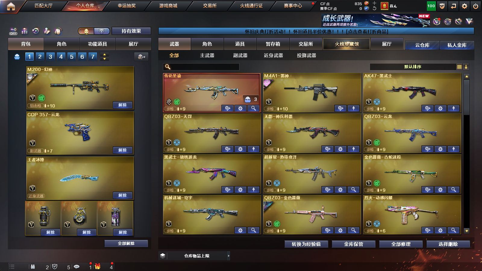 《传说圣谕》《m200幻神+幻神动感闪耀》《裁决+裁决羽掣+百城联赛天津皮+音效卡》《cop云龙》《qbz天罚》《qbz金色蔷薇》《毁灭》《雷神》《黑武士》《朱雀蛇隐宗 火麒麟零纪元 异变清道夫蛇影双骄》《华 机械姬 奇洋探员满配 乔伊教练满配 蛇隐宗满配 云海玲珑 4防王者春 王者零华冠丽服》《b s战队炫彩背包 超级背包》《赤狱骑士怀旧音效卡 烈火动感闪耀音效卡》《金色蔷薇破浪逐光 毁灭svcfpls16》;QBZ03-金色蔷薇,M200-幻神,传说圣谕,
