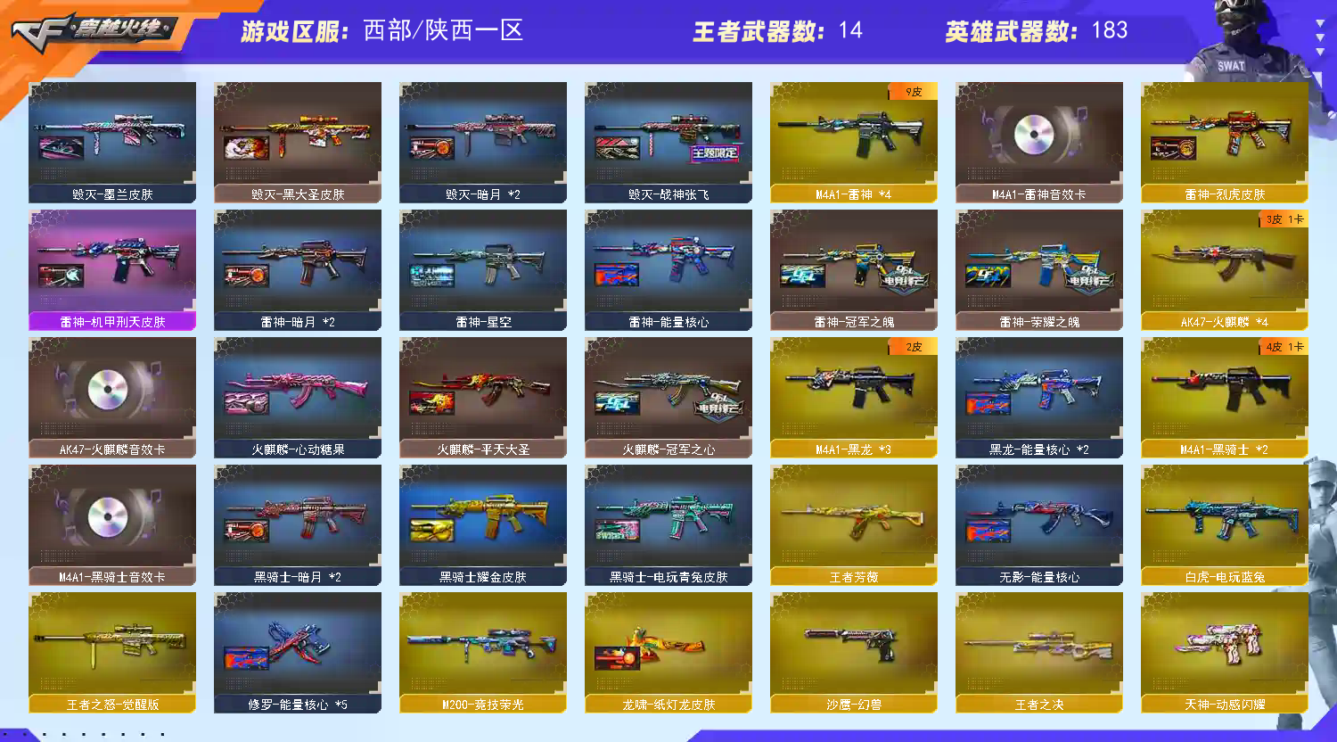• 游戏区服:穿越火线 / 电信区 / 陕西一区