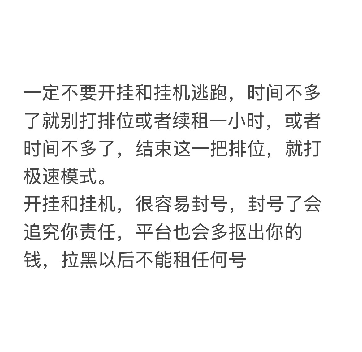 别开挂,犯法会追究。别挂机,挂机很容易封号,挂机和封号了平台会多抠除你的钱,会被拉黑,以后不能在平台租号。 时间快到了还mei有打完这一局,就再续租一小时,或者看时间不多了,就别开把排位了,打极速 模式,排位挂机很容易封号。 如果上号显示冻结,点申诉,等几分钟我解冻,很快别立马退款。 紫金套,掠夺套。毕业热门皮肤,全满级有炫彩,点收藏以后点收藏夹下单 狂徒:塑水 盖亚 紫金 25冠军 混沌 洪荒怒焰 离子2.0 掠夺(掠影) 幻影:侦察 24冠军 洪荒怒焰 掠影2.0 异鳞魔蛇 砰砰X特攻队 刀: 黑波之刃 掠夺爪刀 显卡3.0爪刀 镭切武士刀 剥皮小刀 掠影反手刀 电光蝴蝶刀电工钳(魔术火花) 紫金爪刀 澄湖链艳蓝扇子 正义:塑水 掠影 奇点 鬼魅:天界神兵 威龙 奇点2.0 掠影2.0 大狙:堕天遗武弃王 偃月苍龙 离子 掠影 莽侠:归零者2.0 显卡3.0 戍卫:天界神兵 掠影 紫金 獠犬:日冕雄狮 归零者 奥丁战神:西部未来奥丁 奇点战神 标配短炮狂怒:光荣异象、紫金和堕天遗武的标配,盖亚短炮 ,紫金狂怒 骇灵蜂刺飞将:紫金和混沌2.0的骇灵,混沌蜂刺,塑水和天界的飞将;西部未来 奥丁,奇点 战神,黑波之刃,紫金爪刀,剥皮小刀,镭切,归零者 獠犬,