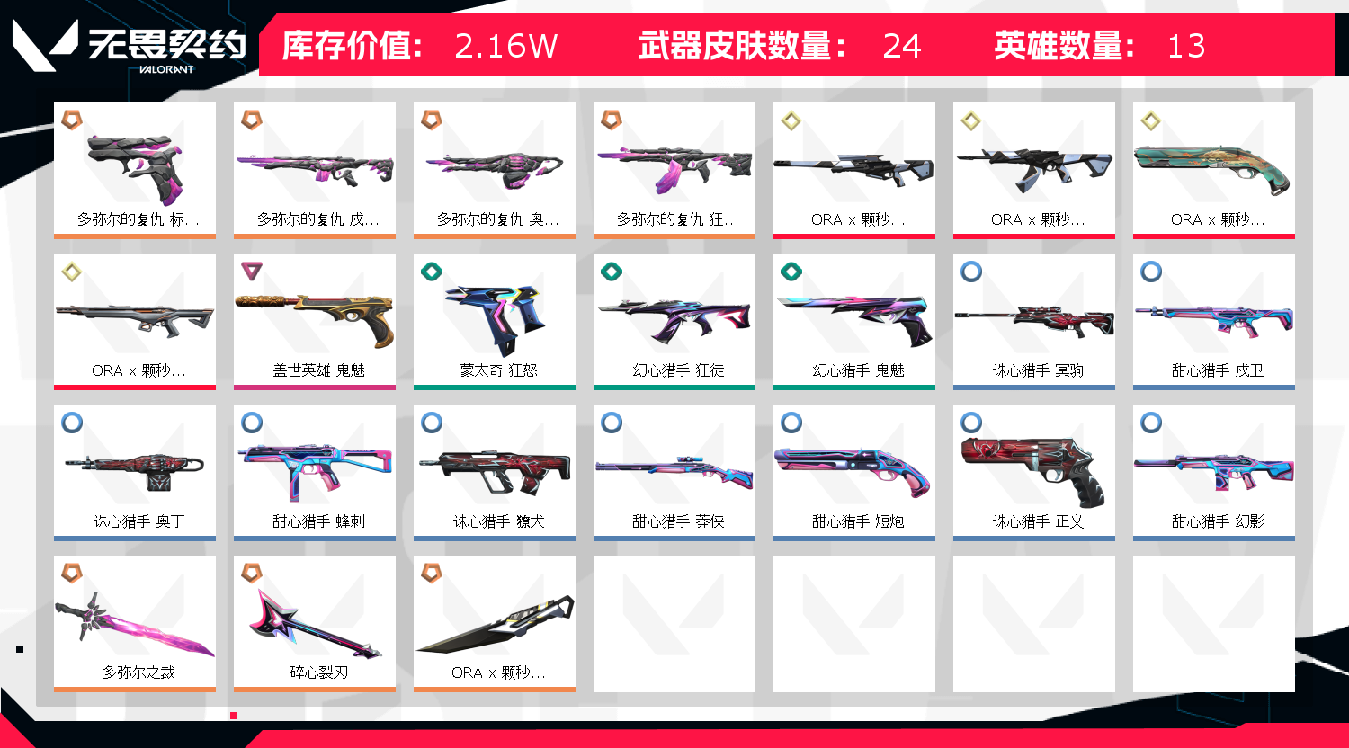 • 皮肤资产价值: 21570