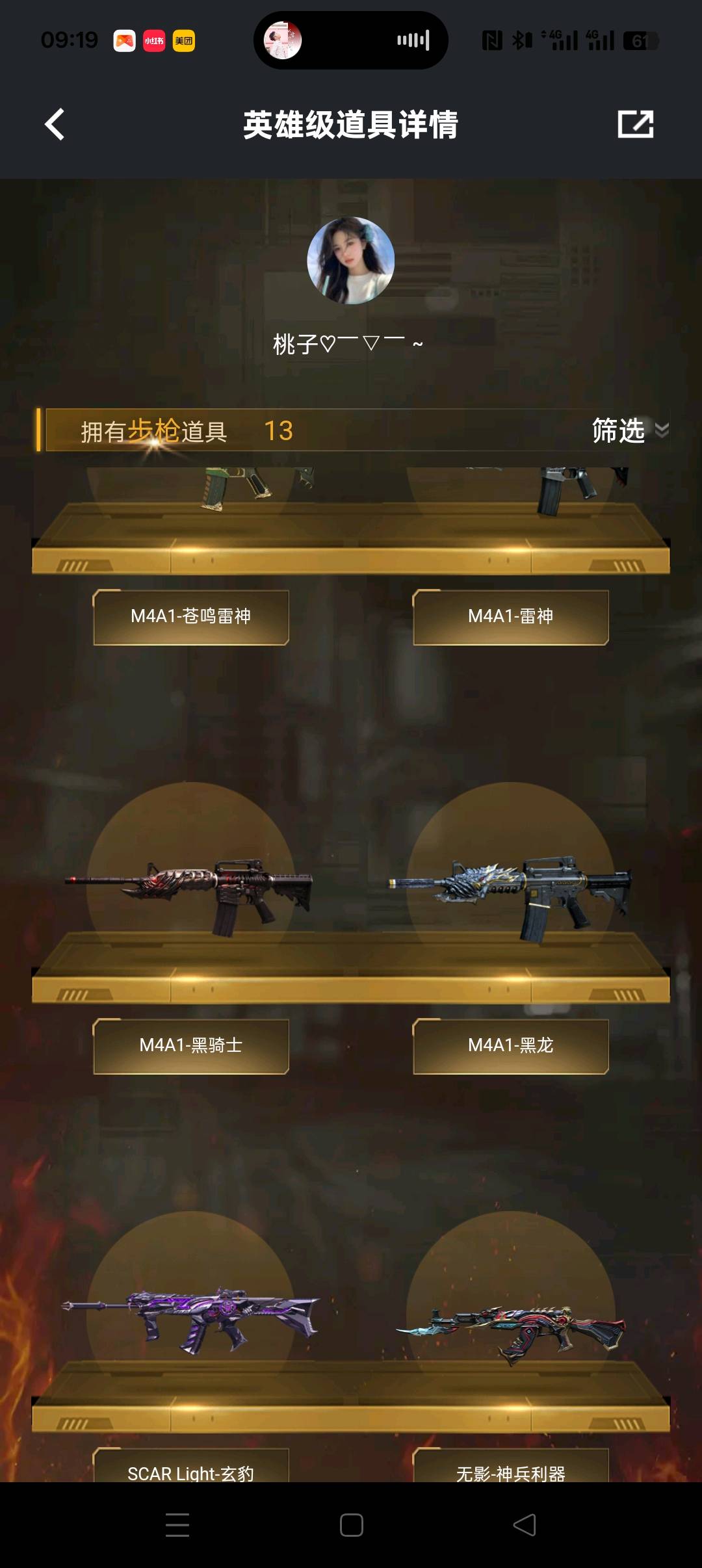 四防传说星亥,四防兰;炽芒蝶刃,传说星骇,M200-幻神,Scar Light-白虎,Kar98K-星神,