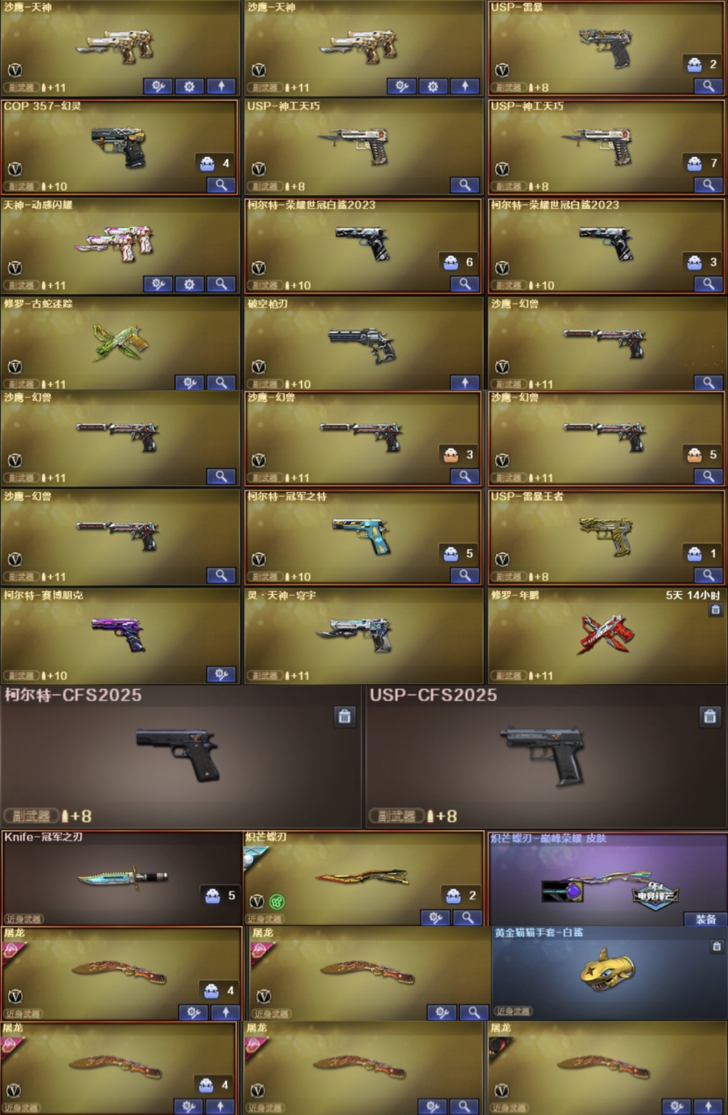 文明游戏开挂起诉追责;USP-雷暴,USP-雷暴王者,柯尔特-荣耀世冠白鲨2023,柯尔特-冠军之特,炽芒蝶刃,Knife-冠军之刃,传说艾莉莎,