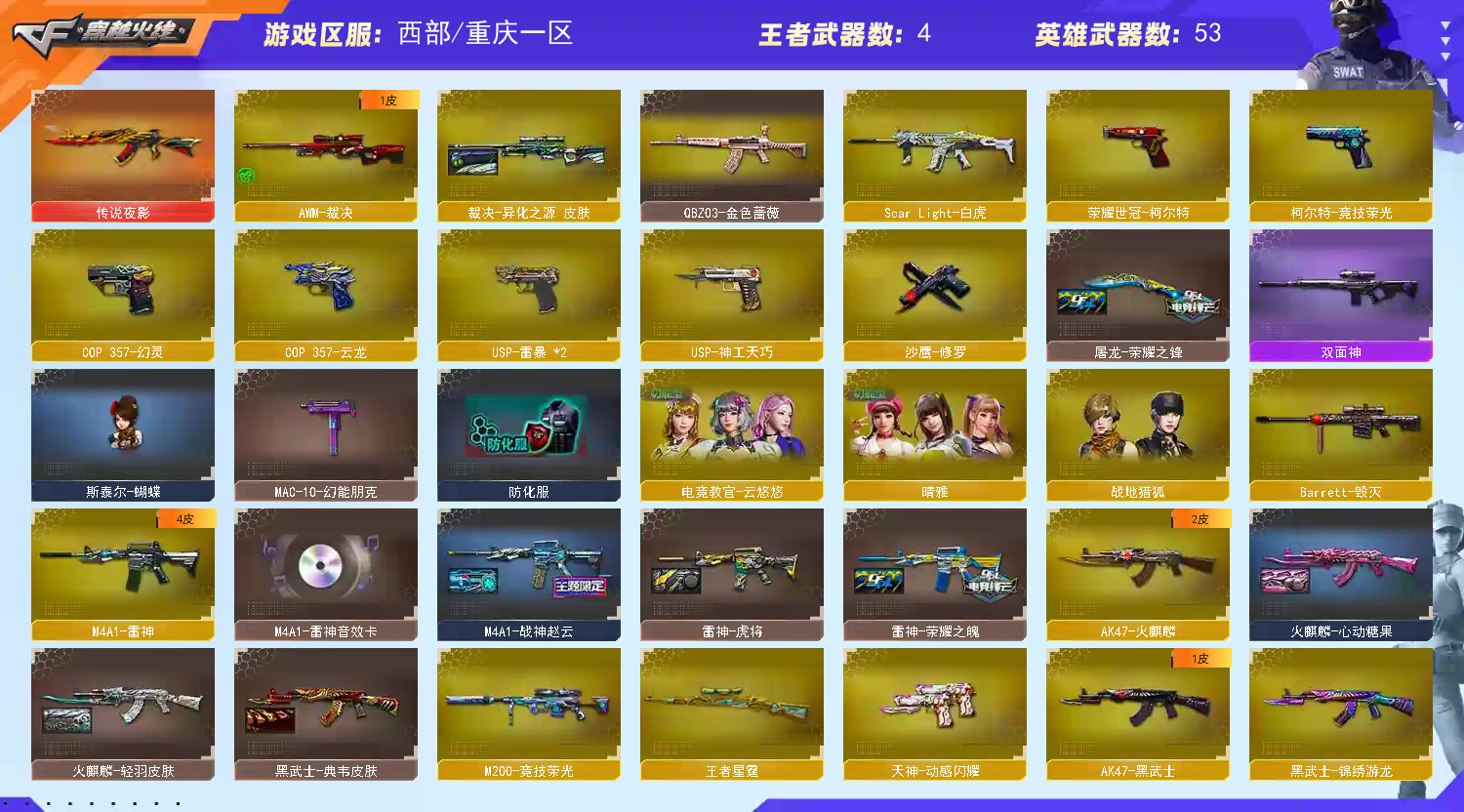• 游戏区服:穿越火线 / 西部 / 重庆一区