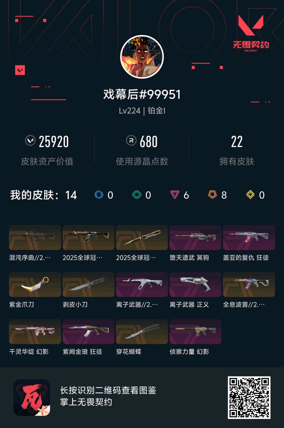 • 游戏区服:无畏契约-wegame / wegame / wegame