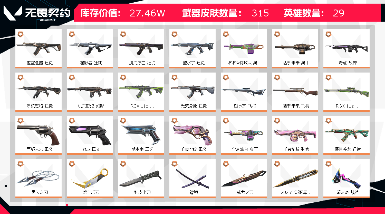 • 皮肤资产价值: 274600