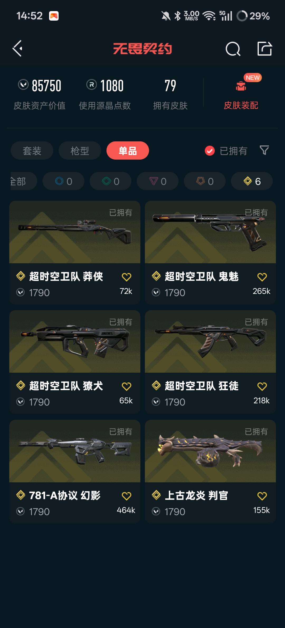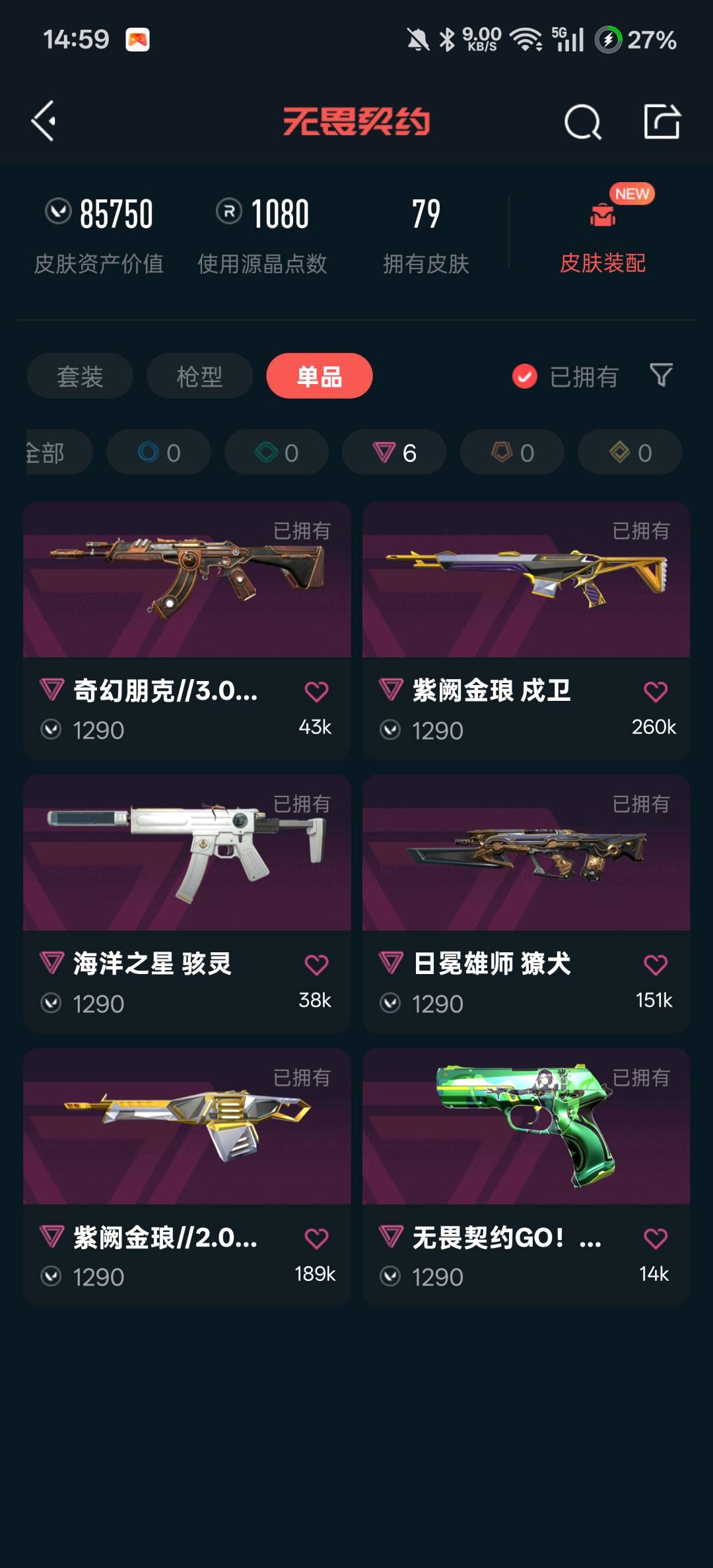 • 皮肤资产价值: 85750