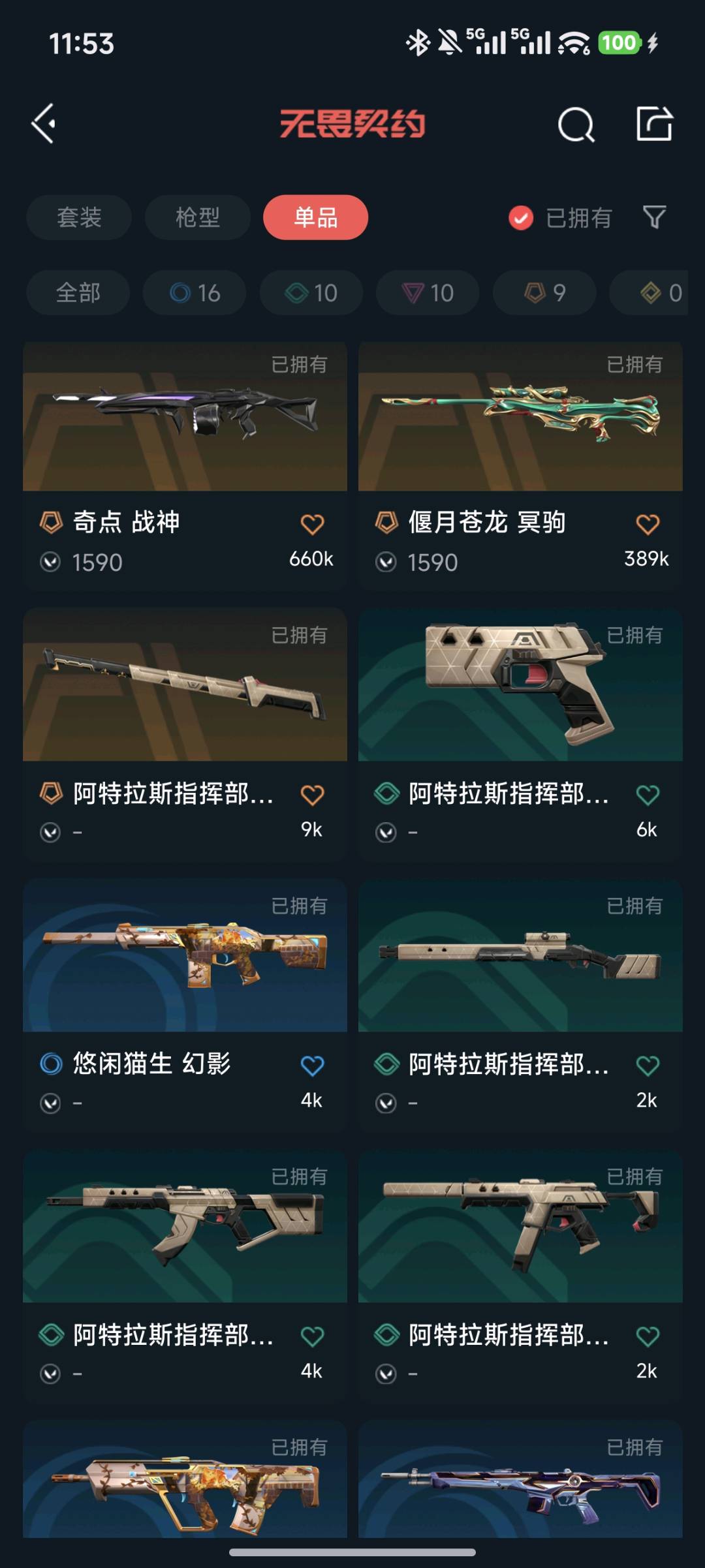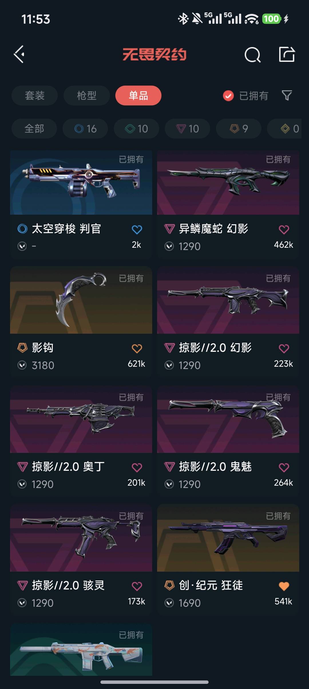 允许 英雄20 武器皮肤数量45不可开挂开挂必追;奇点 战神,盖亚的复仇 狂徒,异鳞魔蛇 幻影,侦察力量 幻影,紫阙金琅 狂徒,塑水宗 狂徒,RGX 11z Pro//3.0 莽侠,