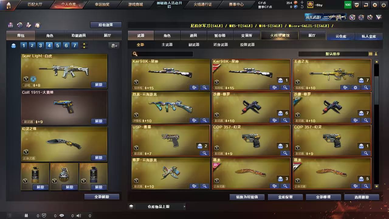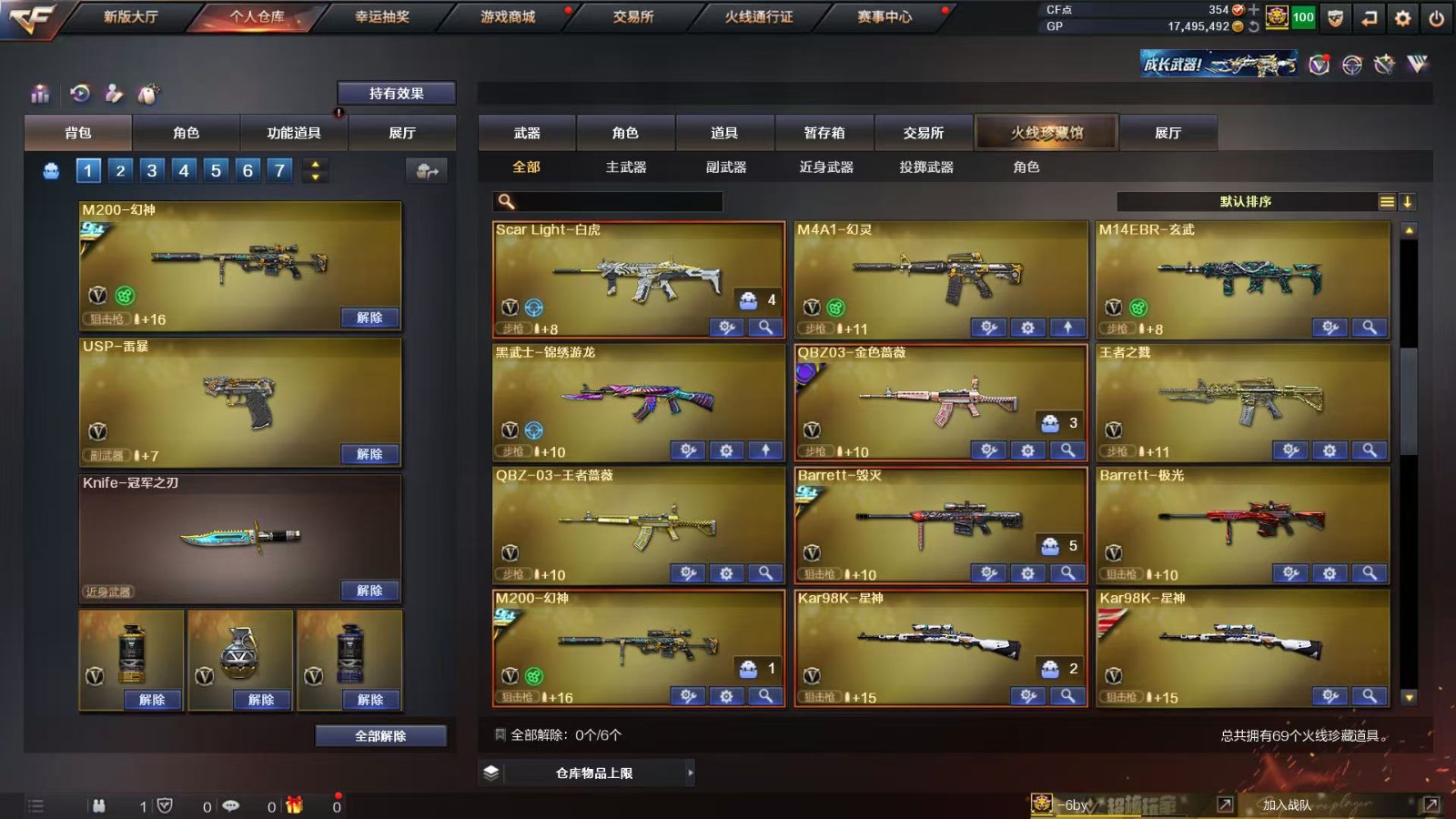 星耀全套皮肤 幻神冠军之幻 两把冠军之刃 两把cop幻灵 一把usp雷暴 星神三件套 AK橫秒之巅皮肤 四个四防角色 鹰 超核玩家名片和超核玩家喷涂;USP-雷暴,Knife-冠军之刃,QBZ03-金色蔷薇,M200-幻神,Scar Light-白虎,Kar98K-星神,