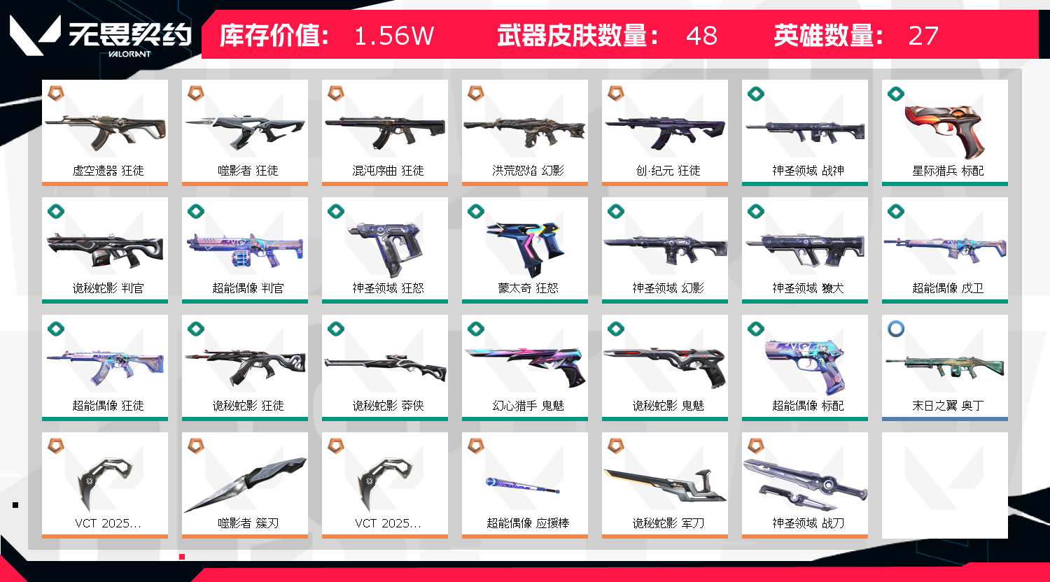 禁止炸鱼转租的提前给老板说清楚炸鱼顶号;VCT 2025 爪刀,虚空遗器 狂徒,噬影者 狂徒,洪荒怒焰 幻影,混沌序曲 狂徒,