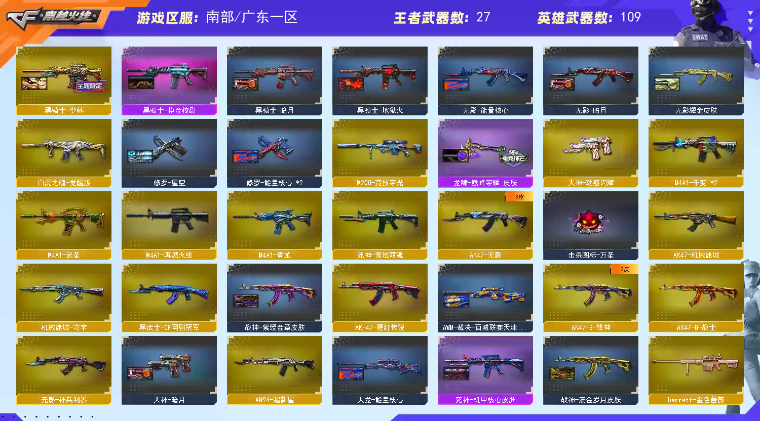 • 游戏区服:穿越火线 / 电信区 / 广东一区