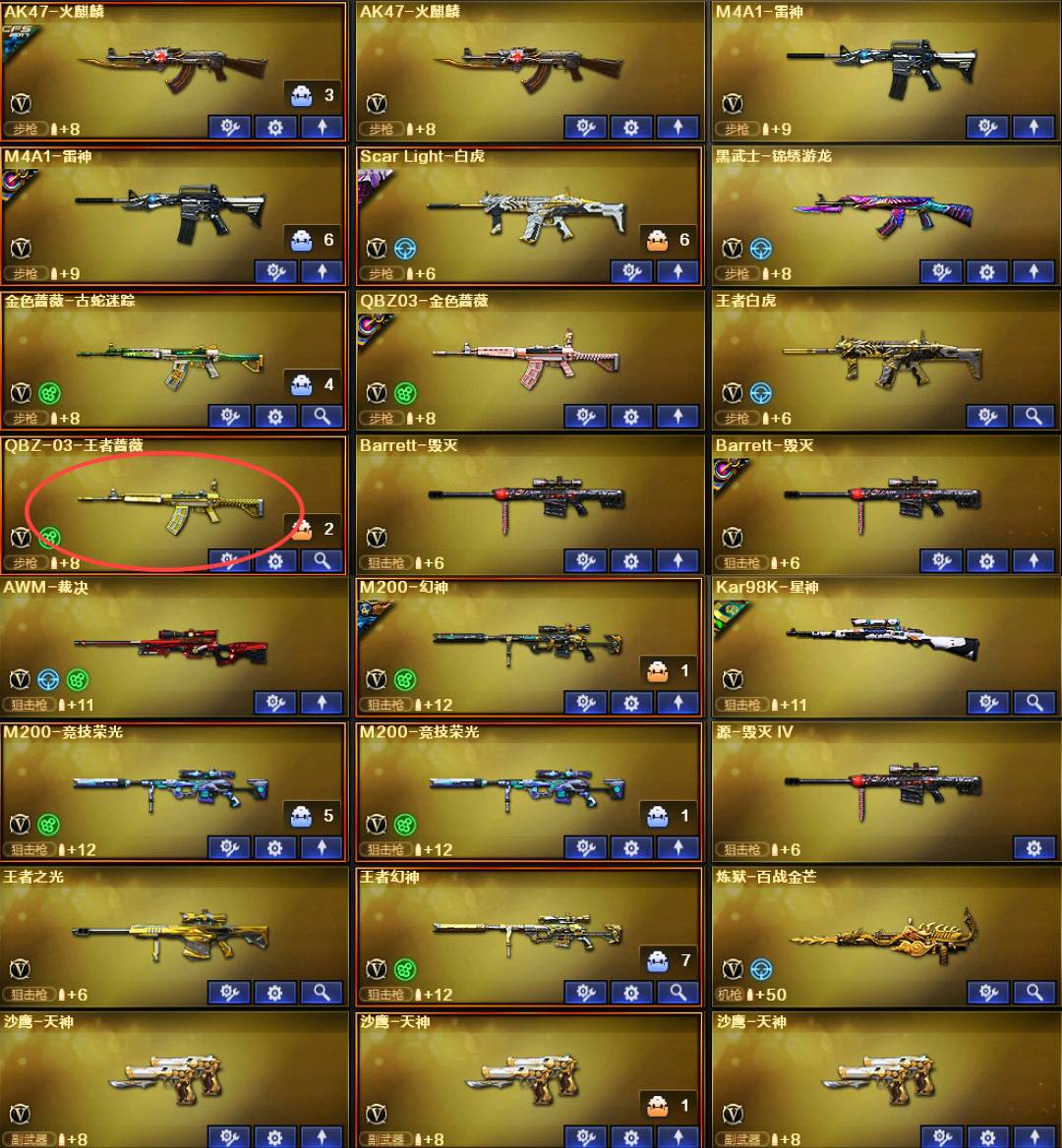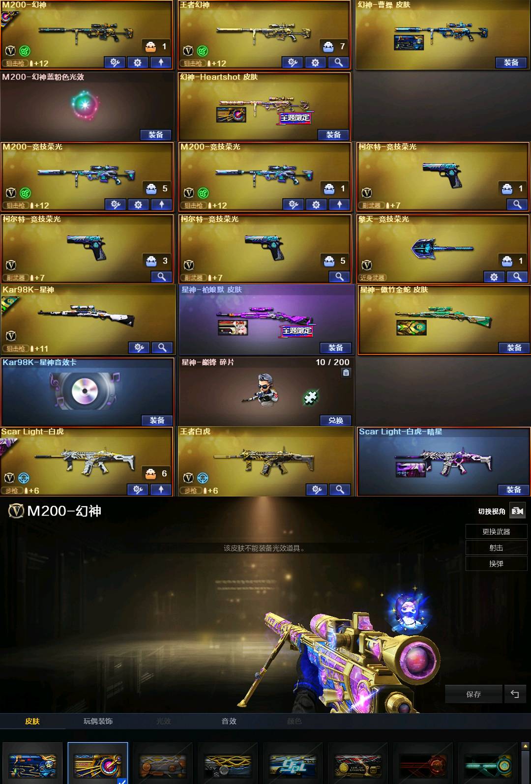 幻神曹操Heart②把幻神竞技荣光全套98k星神音效卡王者白虎QBZ金色蔷薇②把炽芒蝶刃④防云悠悠