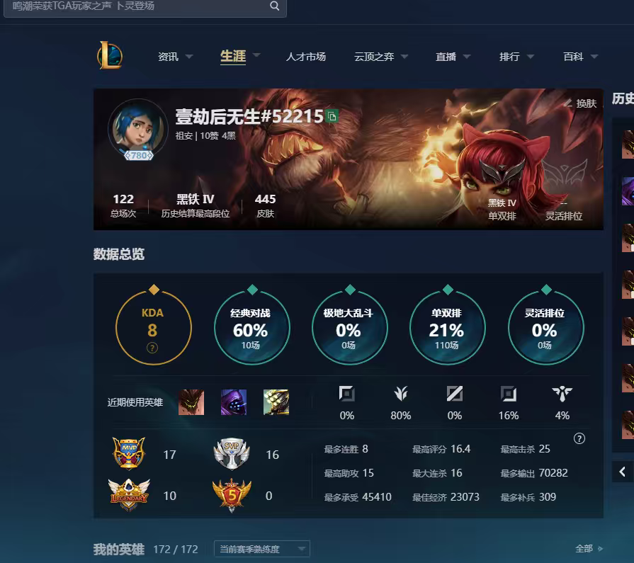 立即租号首页 > 租号大厅 > 英雄联盟 > 联盟一区/祖安 > ❤️全皮 757❤️ 原皮 446❤️炫彩 312❤️极品负胜率号黑铁 4 ❤️ 可排位❤️
