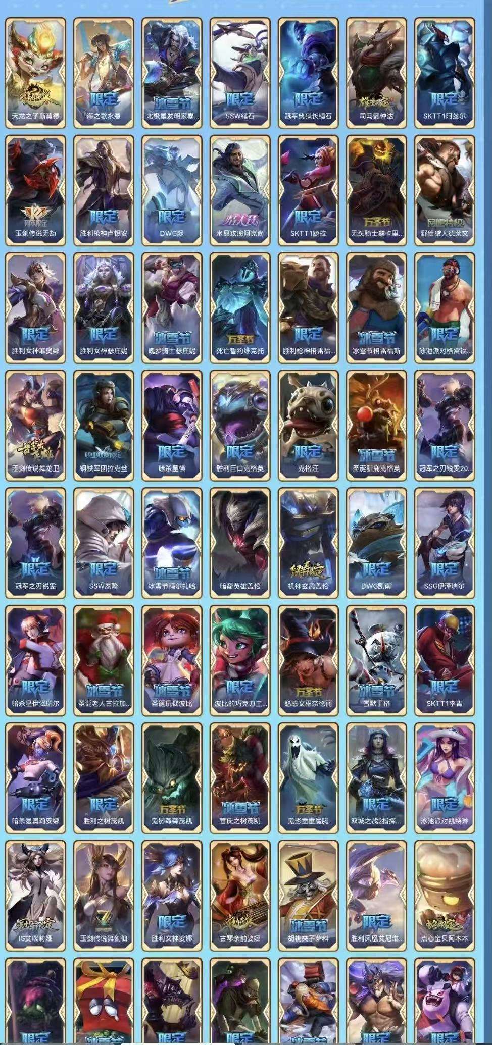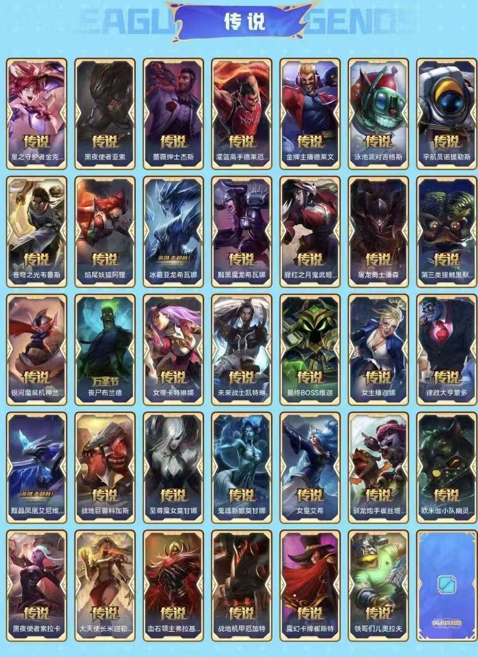 真实1296皮/可排位/15神话/201限定/73传说/龙虾+黑龙-至臻寡妇-小鱼-盖伦-万豪-剑魔-剑姬-石头人等/海克斯科技薇恩/超多年限/冠军皮肤超多