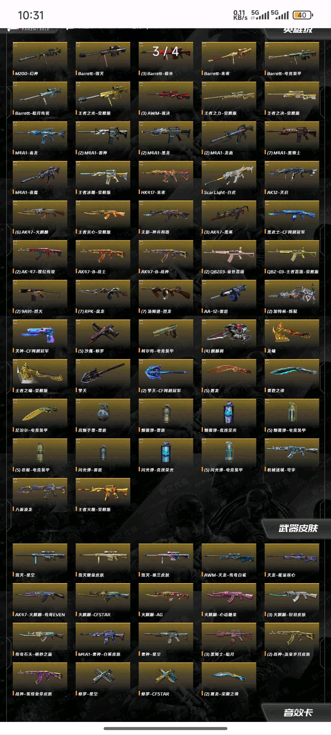 1;RPK-盘龙,QBZ03-金色蔷薇,M200-幻神,Scar Light-白虎,