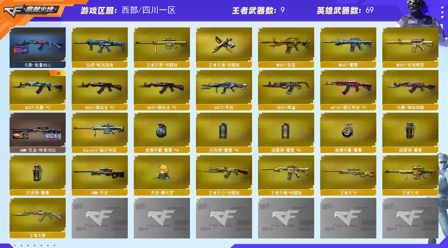 首页 > 租号大厅 > 穿越火线 > 电信区/四川一区 > 【西.部】天花板♥幻神AG三件套♥裁决荣耀♥电玩蓝兔♥雷神兔兔♥毁灭2020
